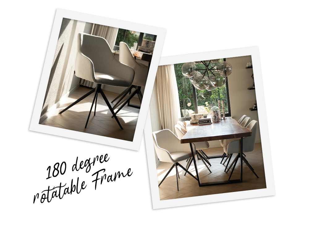 Möchtest du eine stilvolle und flexible Esszimmergestaltung? Kombiniere den Esszimmerstuhl Mex mit deinem bestehenden Interieur für einen einzigartigen Look. Der um 180 Grad drehbare Sockel sorgt für zusätzliche Flexibilität, während die robuste schwarze Basis und der luxuriöse Strukturstoff für ein modernes und cooles Aussehen sorgen. Mex ist die perfekte Wahl für alle, die sowohl Komfort als auch Stil suchen.