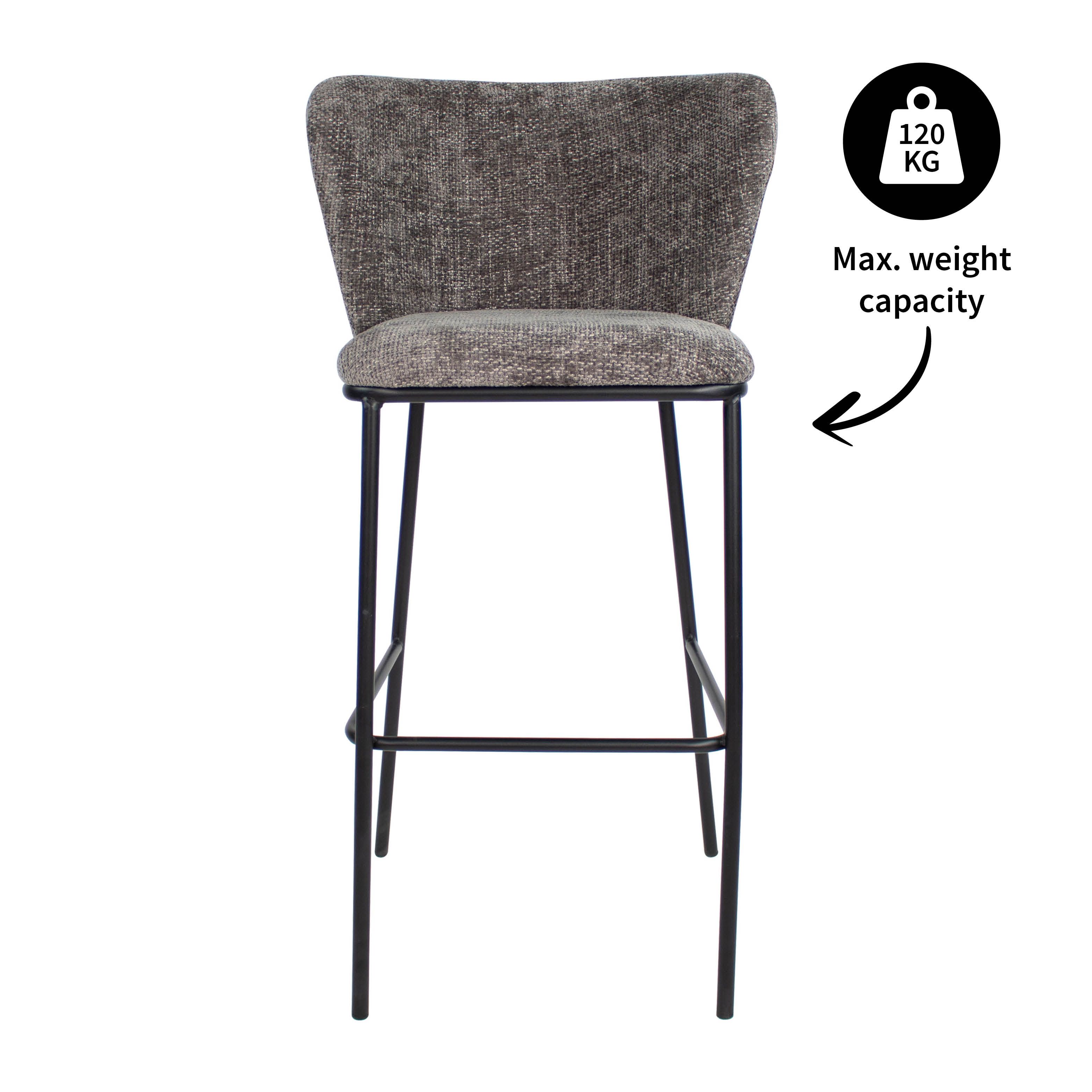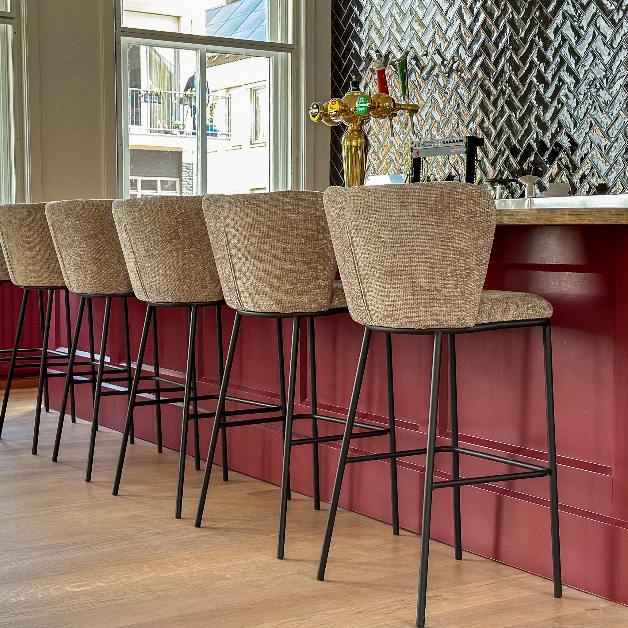 Lernen Sie unseren Barhocker Bo kennen! Barhocker Bo ist eine moderne und bequeme Wahl für jede Bar oder Kücheninsel. Mit einem weichen Chenille-Stoff gepolstert, bietet dieser Hocker nicht nur ein weiches Sitzerlebnis, sondern verleiht dem Raum auch einen Hauch von Eleganz. Der Hocker verfügt über ein stabiles Metallgestell mit Fußstütze und eine breite Rückenlehne, die für optimalen Sitzkomfort sorgt.