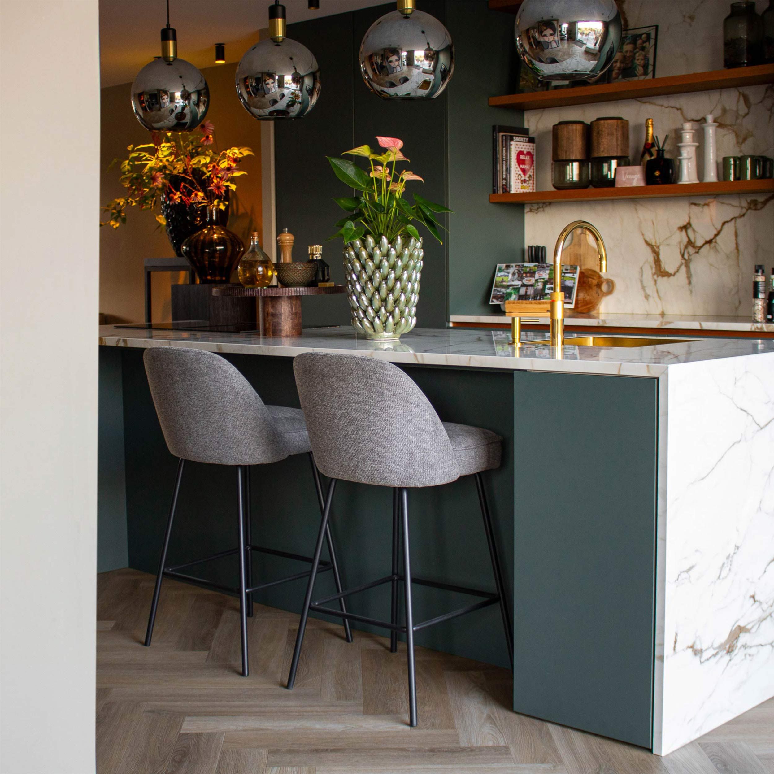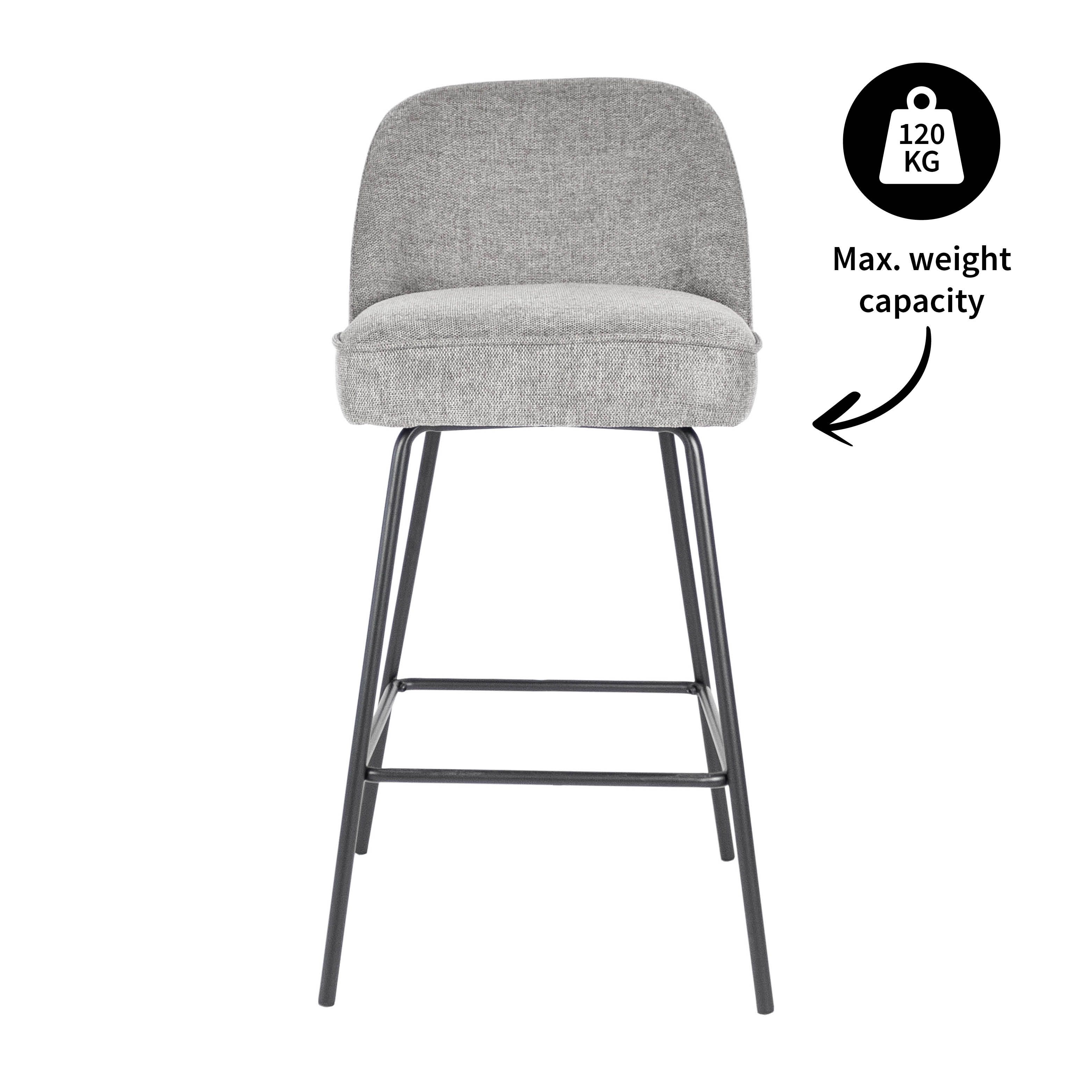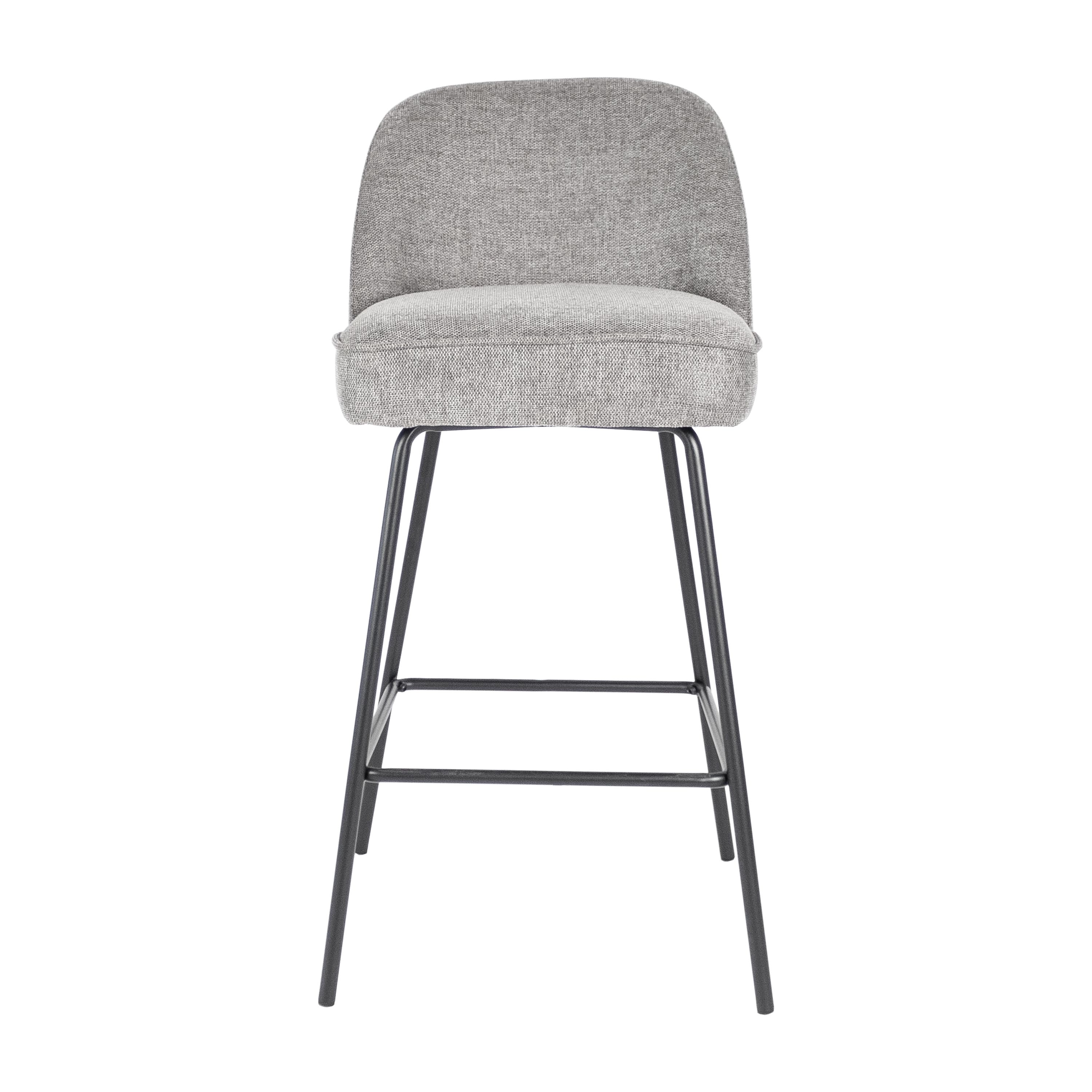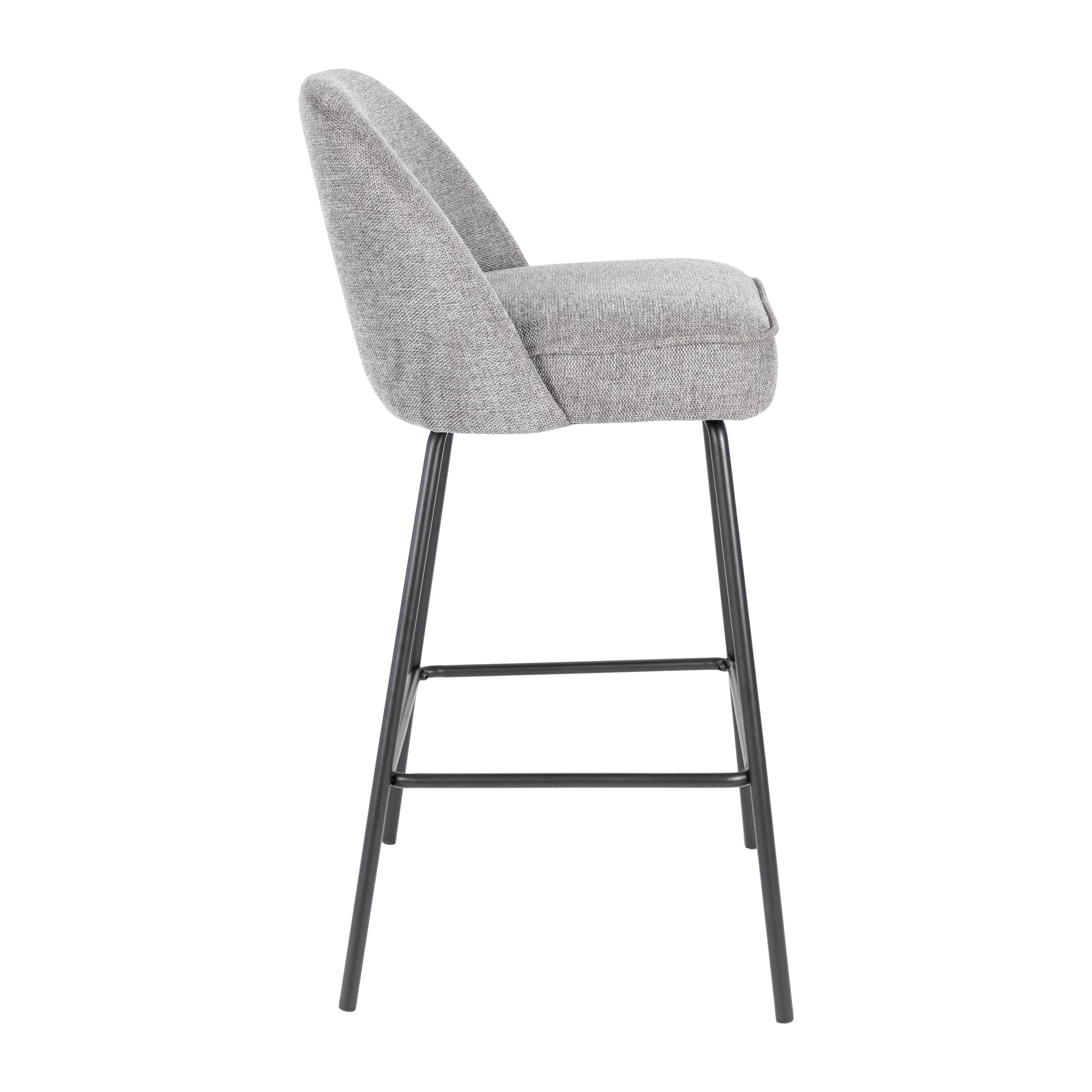 Das ist unser Barhocker Lucy. Mit seiner eleganten runden Rückenlehne, dem gepolsterten Sitz, dem eleganten schwarzen Metallgestell und der strukturierten Stoffpolsterung strahlt Lucy einen Hauch von Luxus aus. Dieser Barhocker bringt nicht nur Stil in Ihren Raum, sondern bietet auch einen sehr bequemen Sitz.