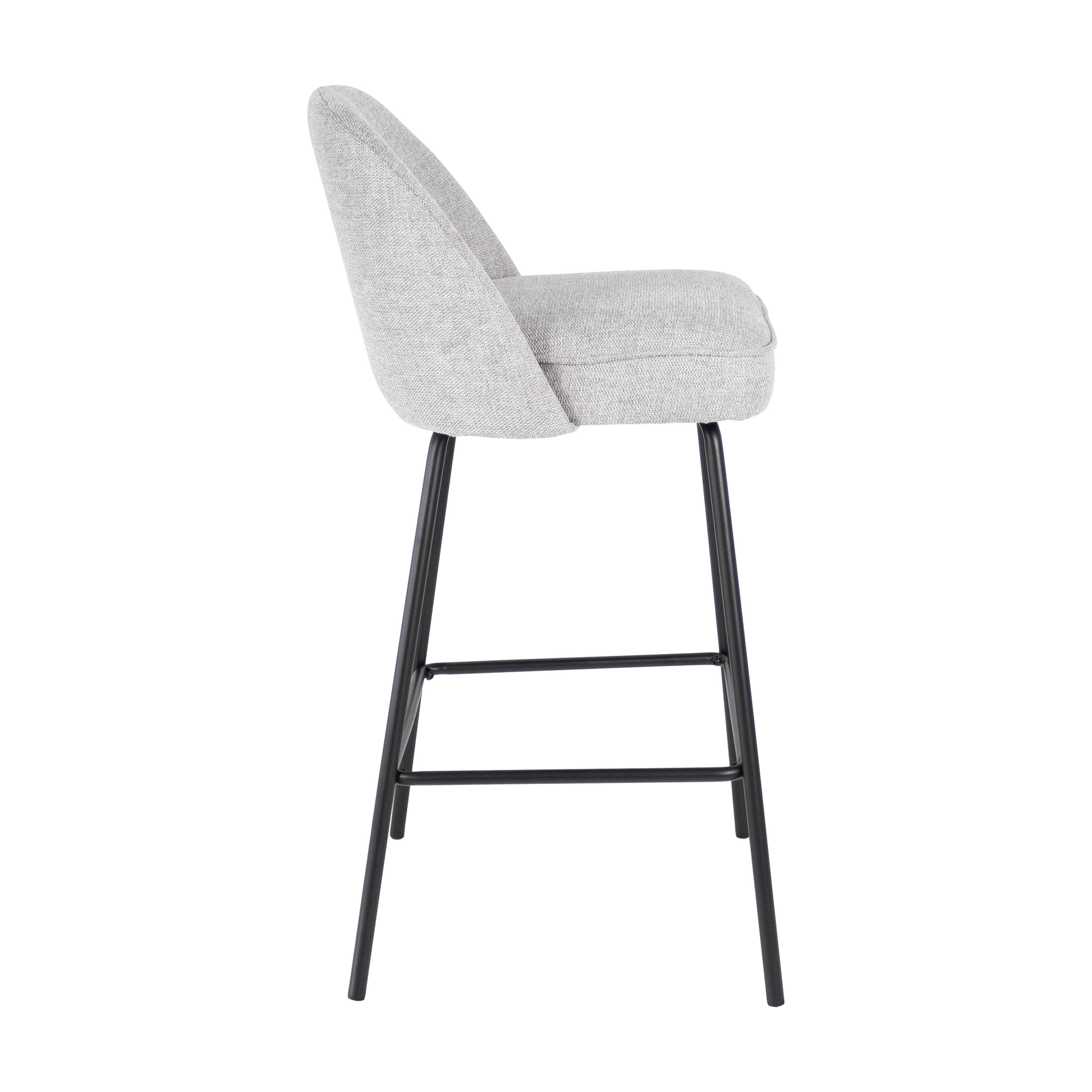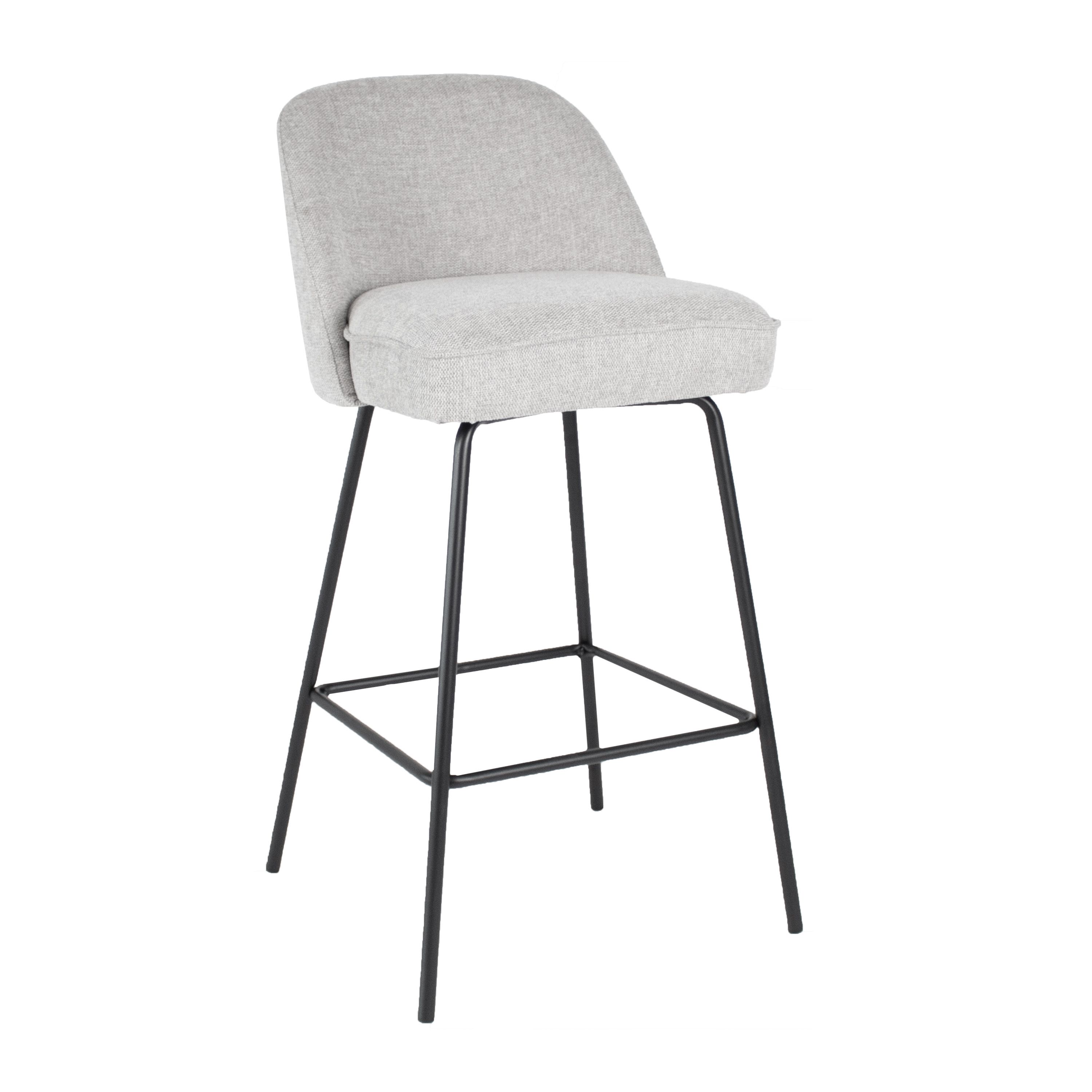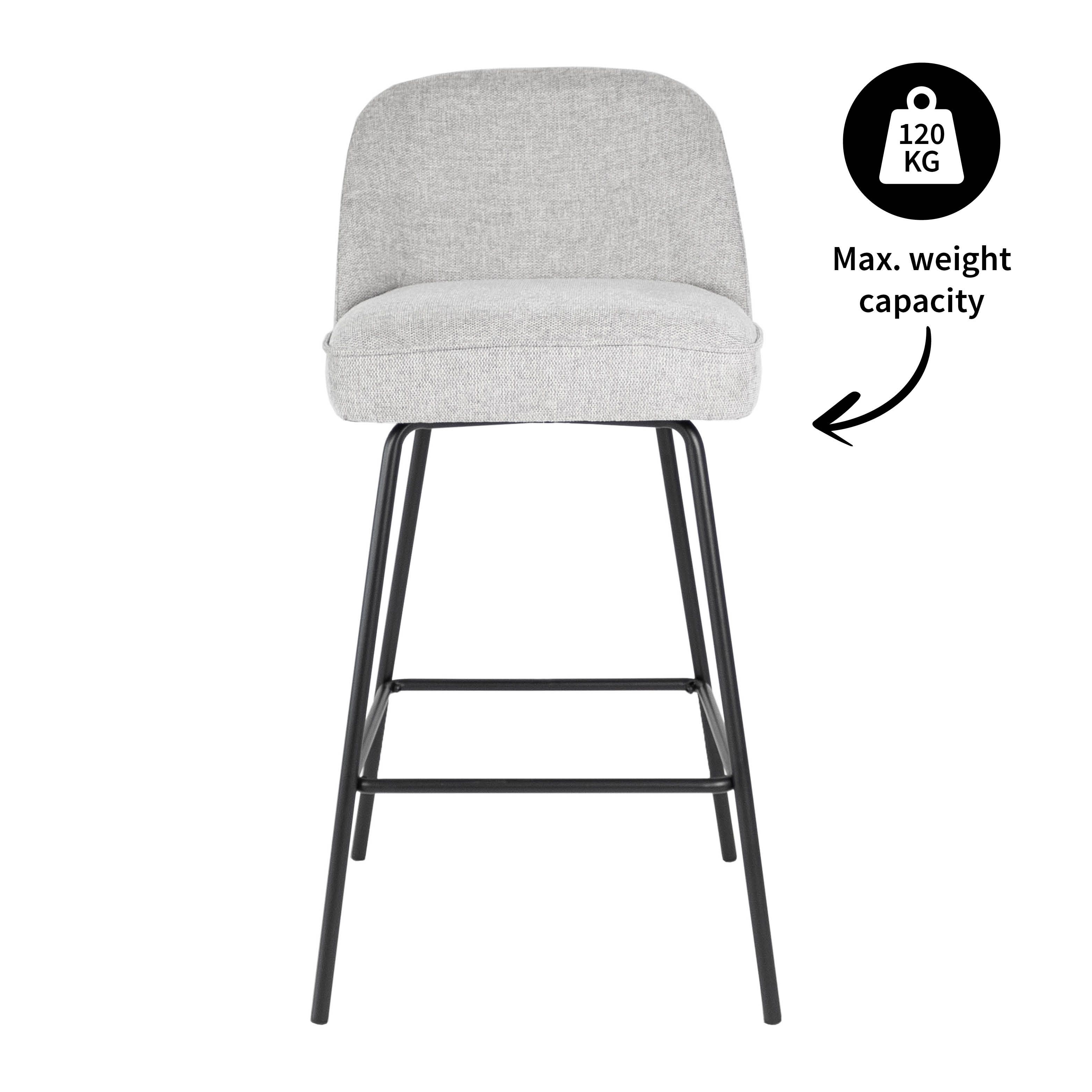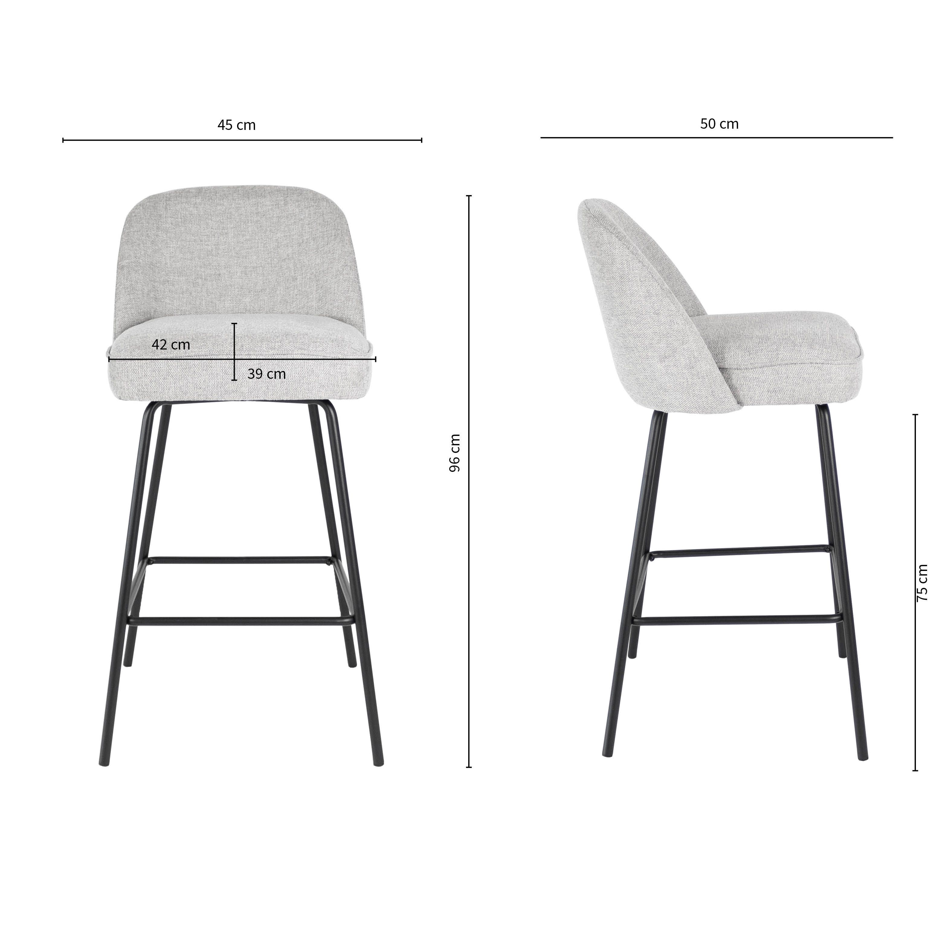 Das ist unser Barhocker Lucy. Mit seiner eleganten runden Rückenlehne, dem gepolsterten Sitz, dem eleganten schwarzen Metallgestell und der strukturierten Stoffpolsterung strahlt Lucy einen Hauch von Luxus aus. Dieser Barhocker bringt nicht nur Stil in Ihren Raum, sondern bietet auch einen sehr bequemen Sitz.