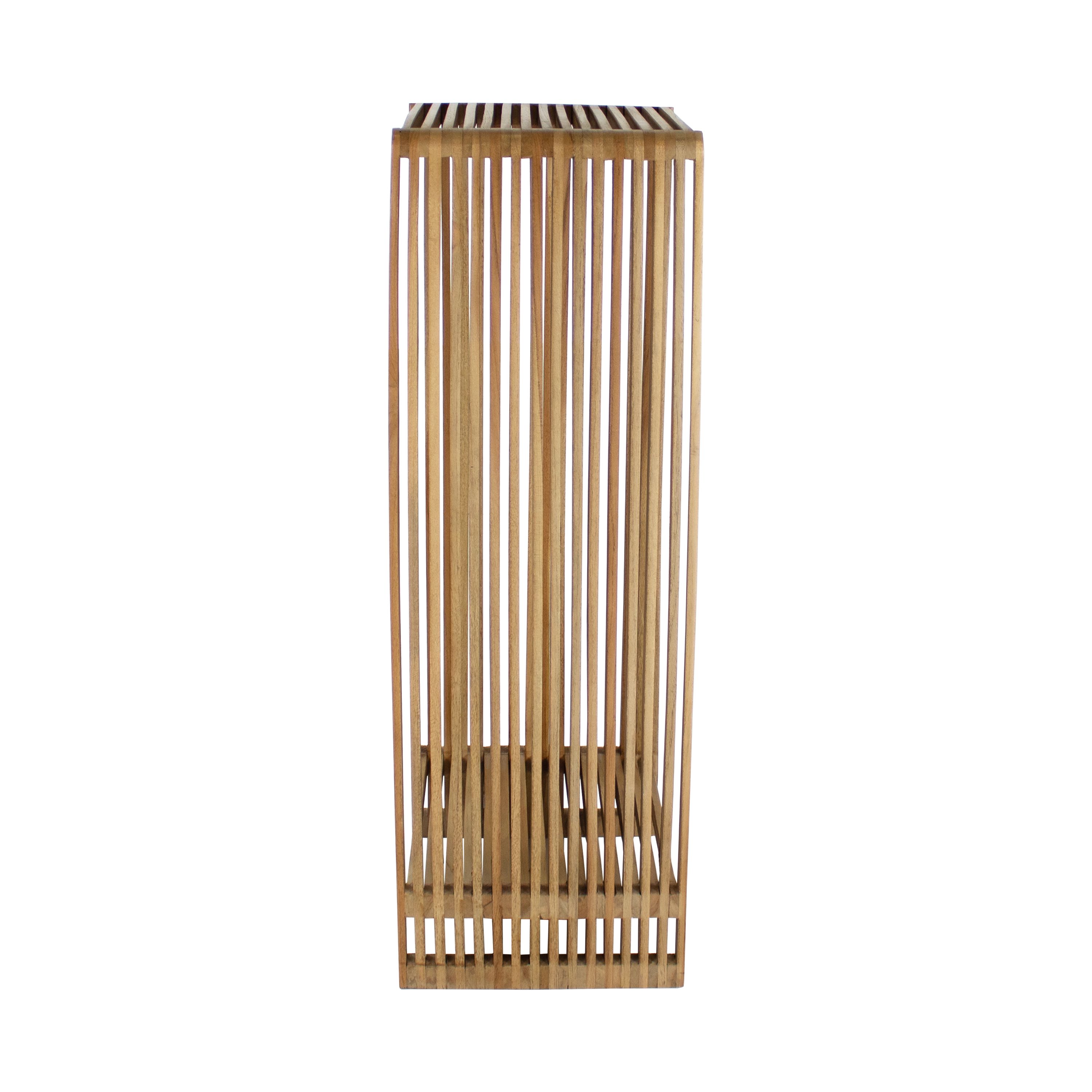 SCHAU DIR MICK AN! Dieser Beistelltisch ist cool, originell und stimmungsvoll. Das schlichte Lamellendesign macht MICK zu einem echten Blickfang. MICK hat einen natürlichen und skandinavischen Look und ist aus goldbraunem Teakholz gefertigt. Er kann als Beistelltisch, aber auch als Nachttisch verwendet werden! Kurzum, MICK ist definitiv eine Bereicherung für Ihr Interieur. Erhältlich in zwei verschiedenen Größen.