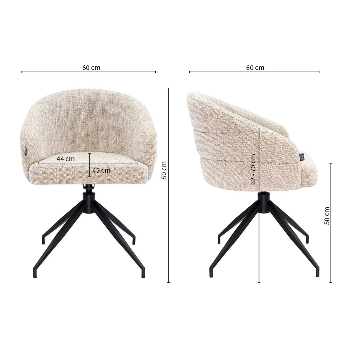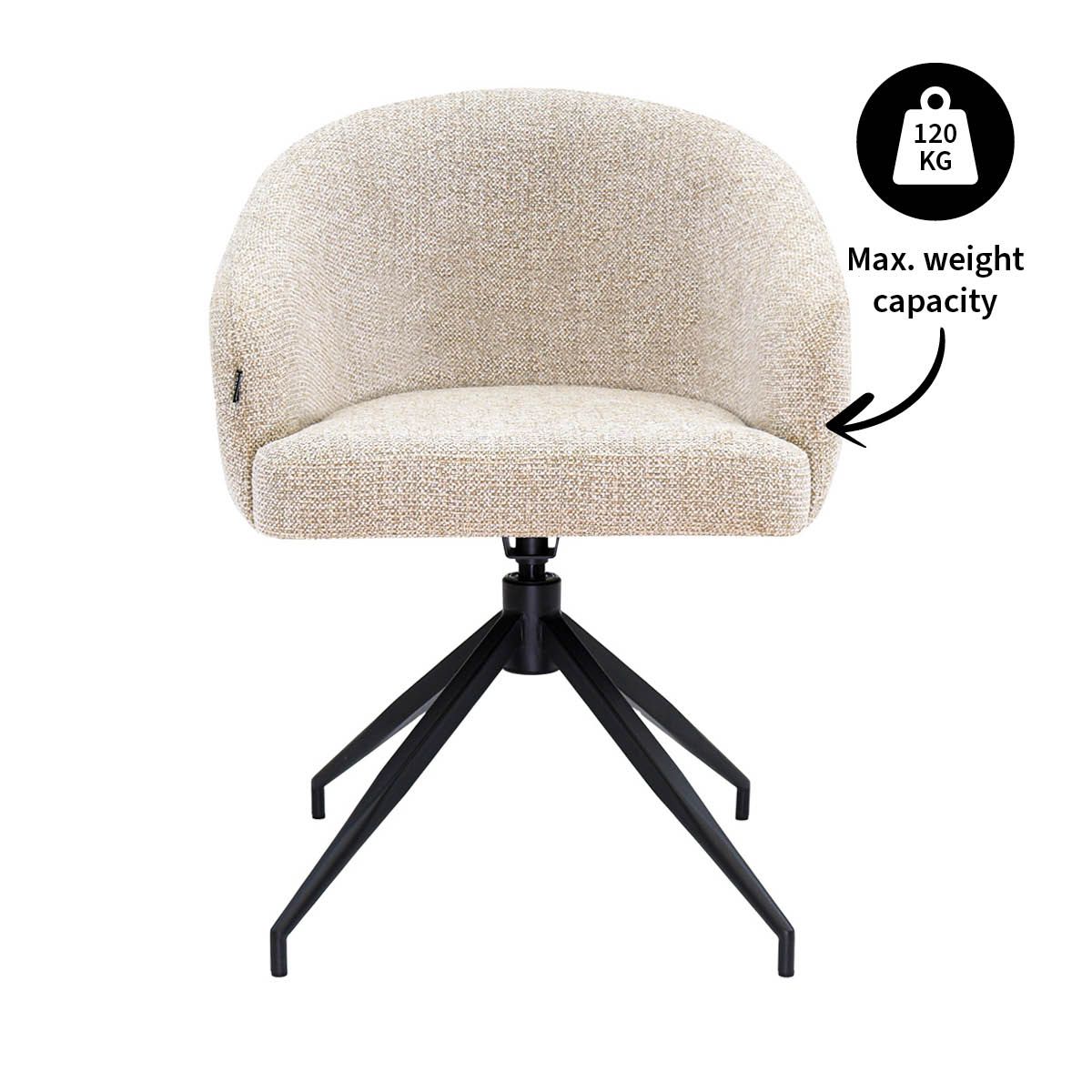 Der Drehstuhl AVA ist die perfekte Kombination aus modernem Design, luxuriösem Komfort und maximaler Funktionalität. Die abgerundete Sitzfläche sorgt für einen weichen, eleganten Look und bietet gleichzeitig höchsten Sitzkomfort. Der reichhaltige, melierte Textilbezug verleiht AVA ein luxuriöses Aussehen und bringt sofort Wärme in Ihr Interieur – ideal für lange Abendessen, angenehme Gespräche oder gemütliche Abende am Tisch.