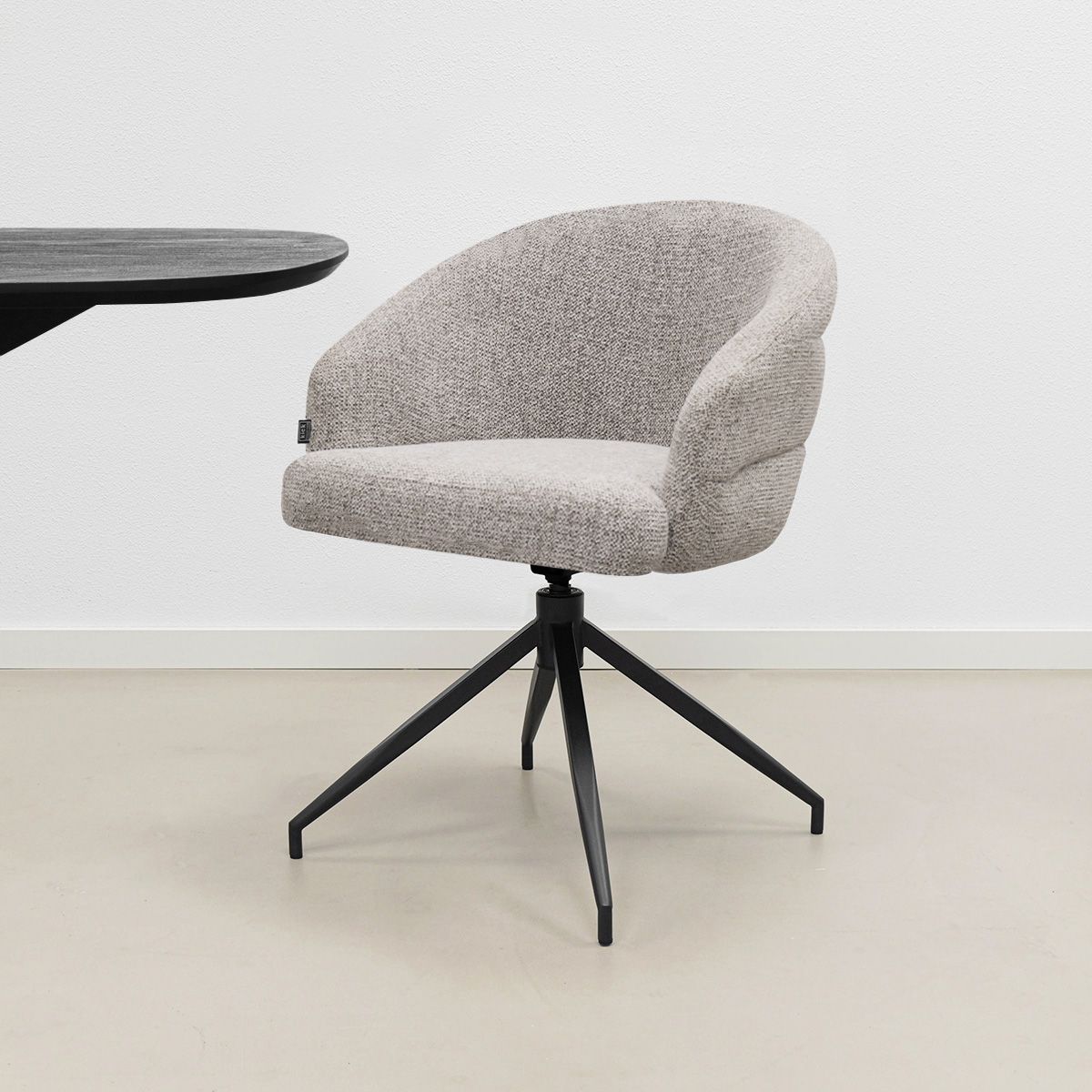 Der Drehstuhl AVA ist die perfekte Kombination aus modernem Design, luxuriösem Komfort und maximaler Funktionalität. Die abgerundete Sitzfläche sorgt für einen weichen, eleganten Look und bietet gleichzeitig höchsten Sitzkomfort. Der reichhaltige, melierte Textilbezug verleiht AVA ein luxuriöses Aussehen und bringt sofort Wärme in Ihr Interieur – ideal für lange Abendessen, angenehme Gespräche oder gemütliche Abende am Tisch.