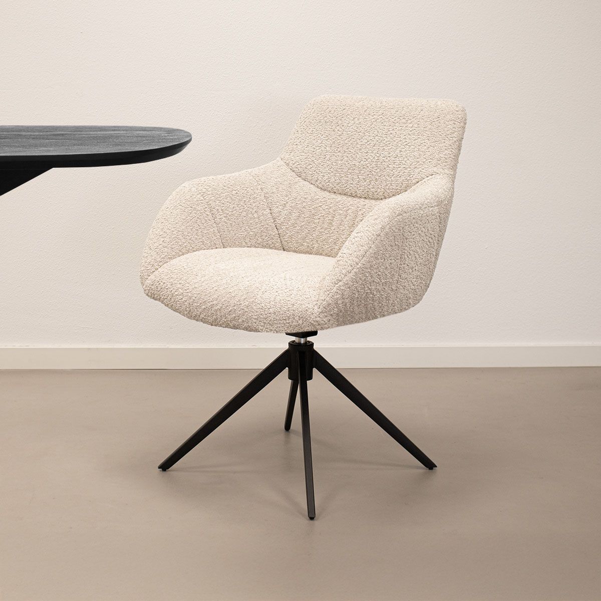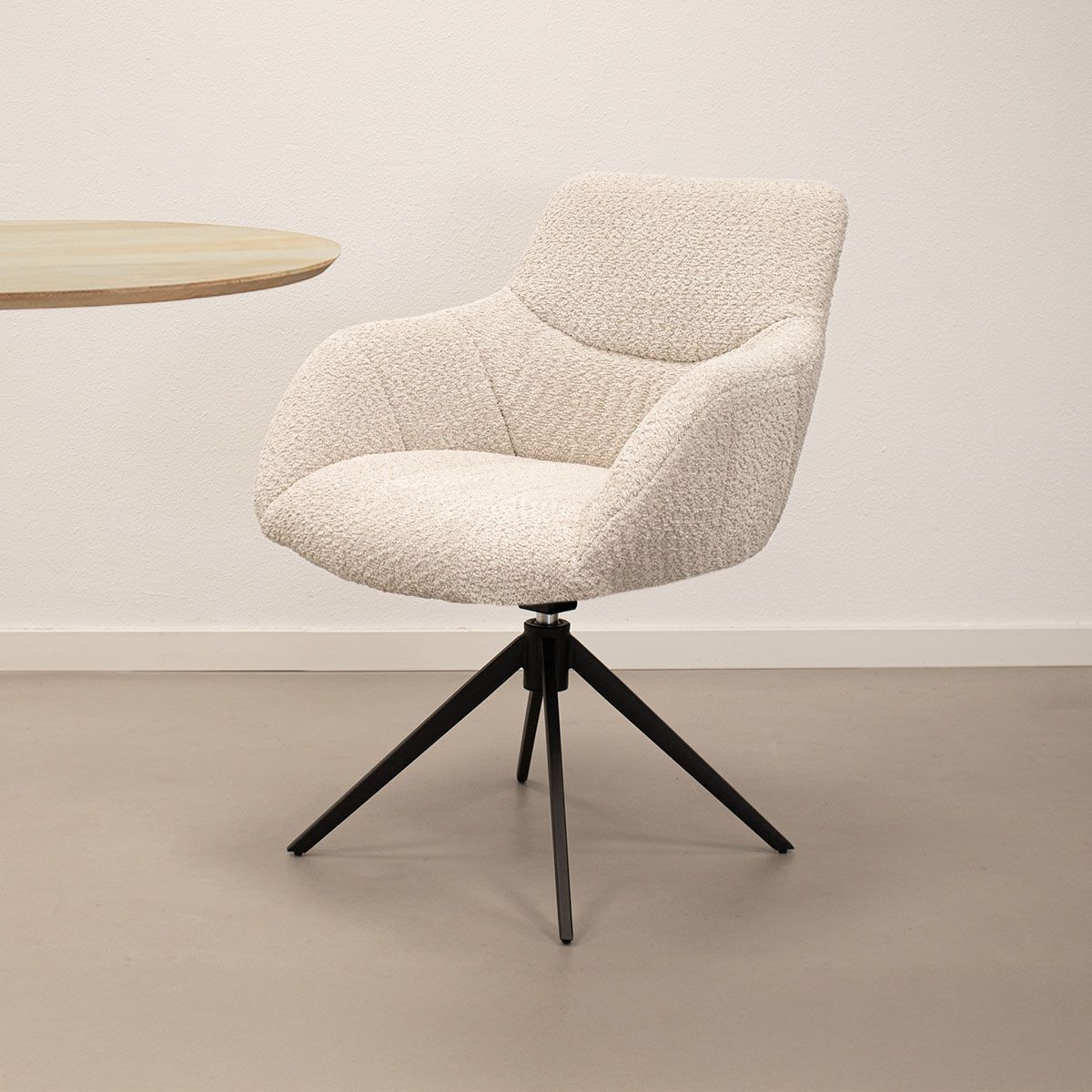 Lernen Sie den KICK Drehstuhl Fer kennen, ein echter Eyecatcher für jede Essecke! Fer vereint eine luxuriöse Ausstrahlung mit hohem Sitzkomfort und ist perfekt für alle, die ein modernes Interieur mit einem verspielten Touch lieben. Dank des stilvollen Steppmusters in Sitz und Rückenlehne erhält Fer einen einzigartigen und eleganten Look. Der weiche Bouclé-Stoff sorgt nicht nur für eine schicke Note, sondern garantiert auch höchsten Komfort.