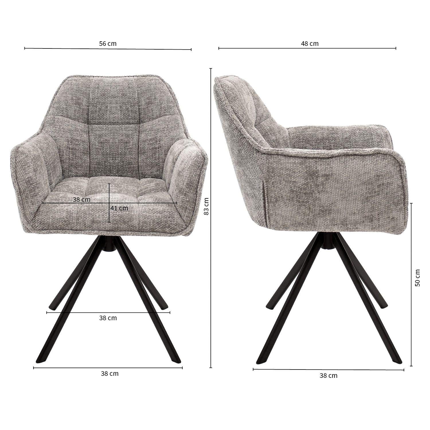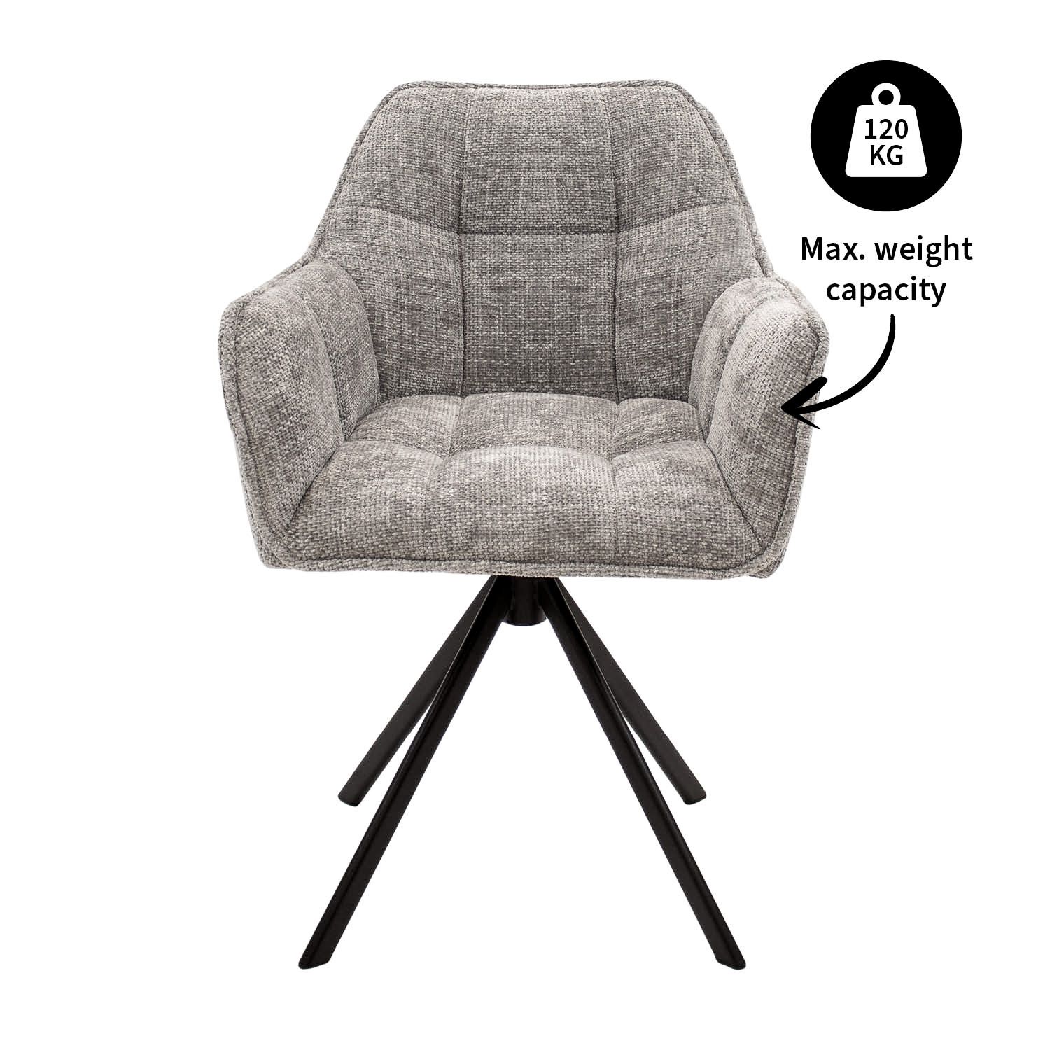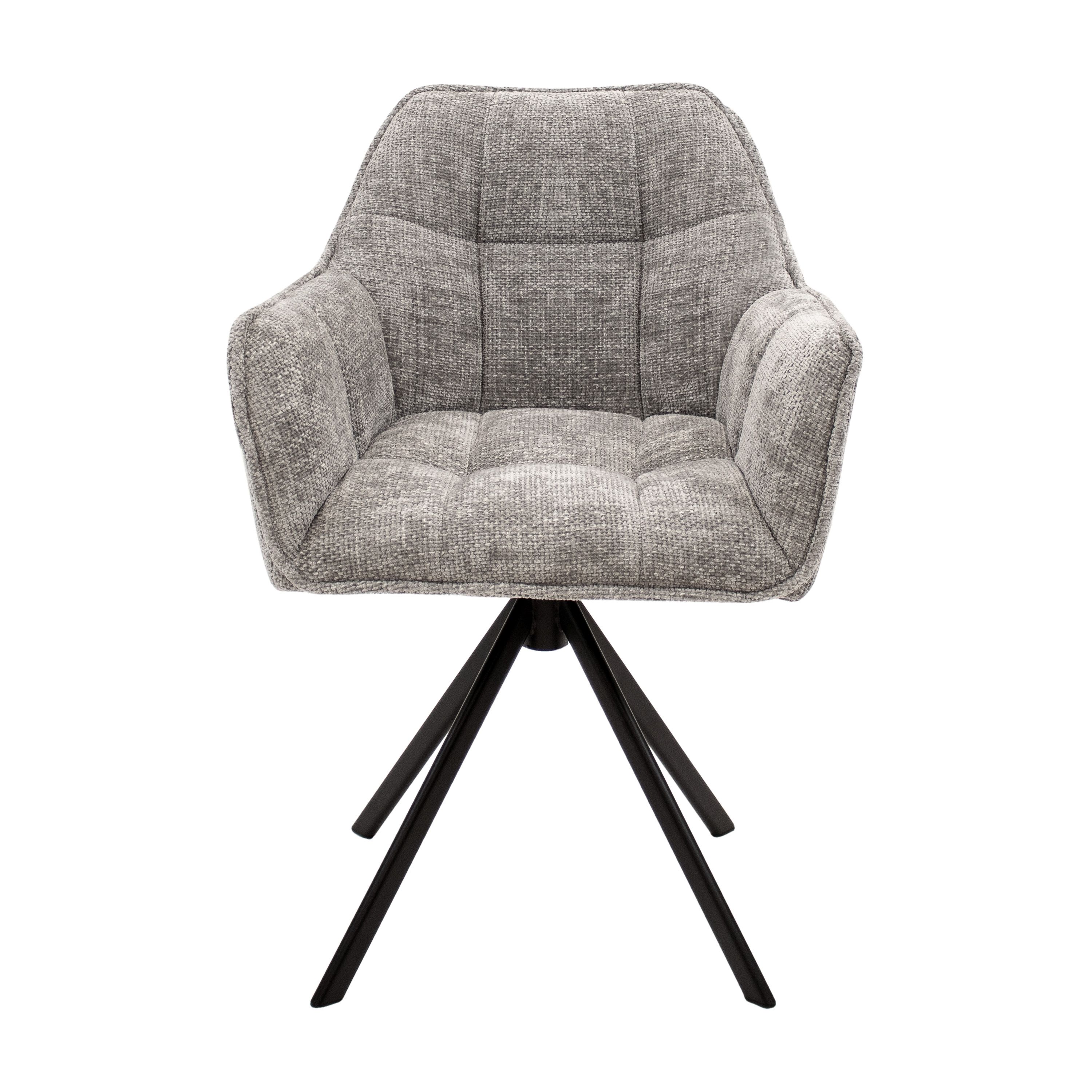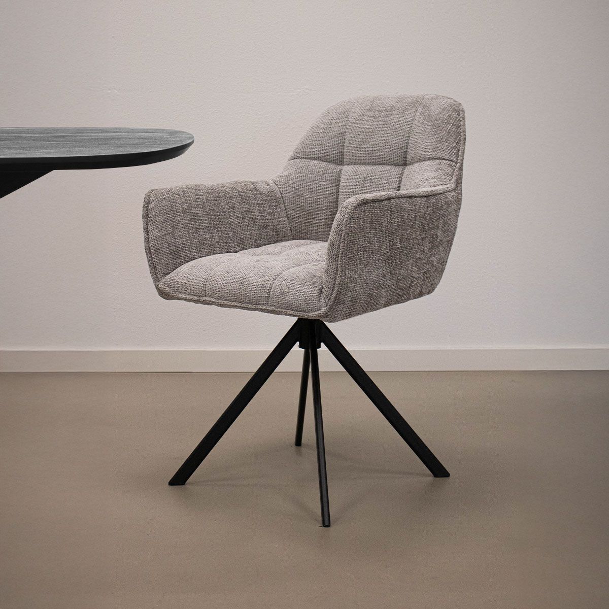 LUC ist die perfekte Mischung aus Komfort, Stil und Funktionalität. Mit seinem um 180 Grad drehbaren Untergestell sorgt LUC nicht nur für Bewegungsfreiheit am Tisch, sondern auch für einen modernen Touch in Ihrer Einrichtung. Die luxuriöse Ausstrahlung des groben Chenille-Stoffes sorgt für eine warme, einladende Atmosphäre, während die Armlehnen zusätzlichen Komfort bei langen Abendessen oder gemütlichen Abenden bieten.