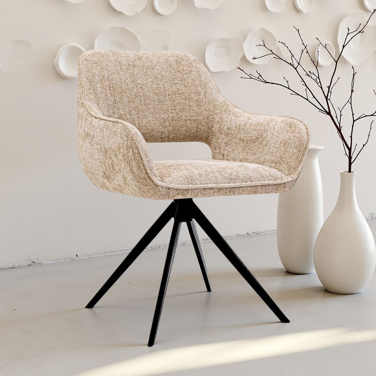 Sie suchen einen Drehstuhl, der Komfort und Optik mühelos vereint? Lernen Sie den KICK-Drehstuhl NORI kennen, einen eleganten Blickfang, der Ihr Interieur mit einem weichen, luxuriösen Look bereichert. Perfekt für den Esstisch, für Ihr Home Office oder als stimmungsvoller Akzent in Ihrem Wohnzimmer.