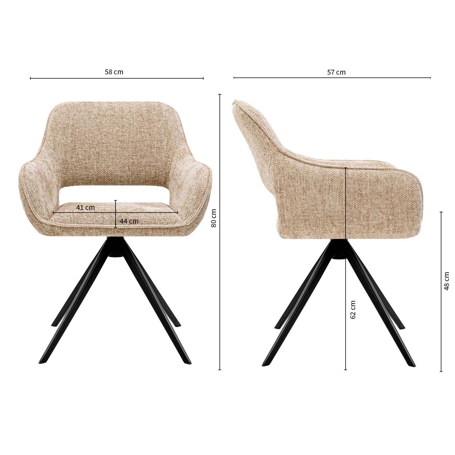 - T: 57 cm x B: 58 cm x H: 80 cm