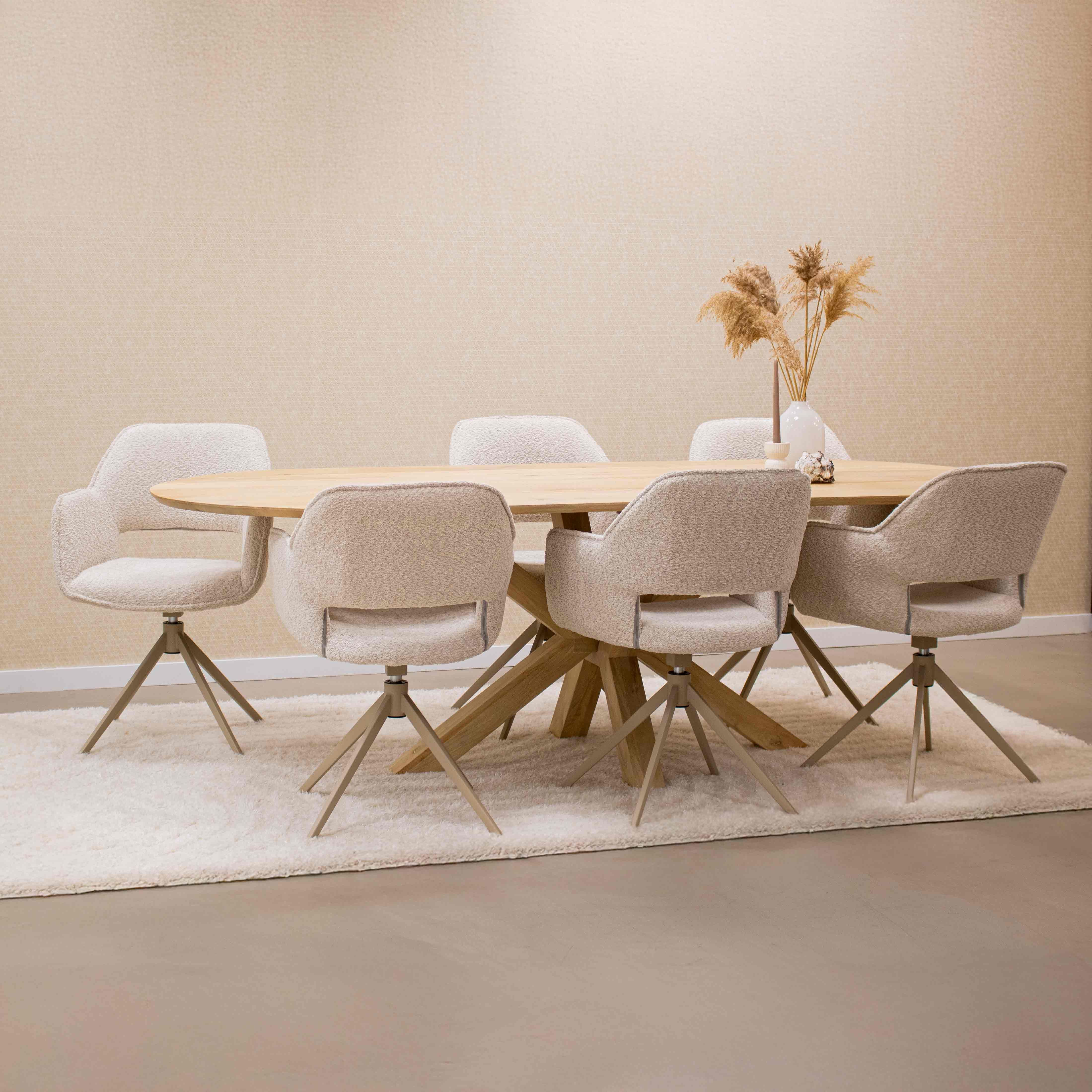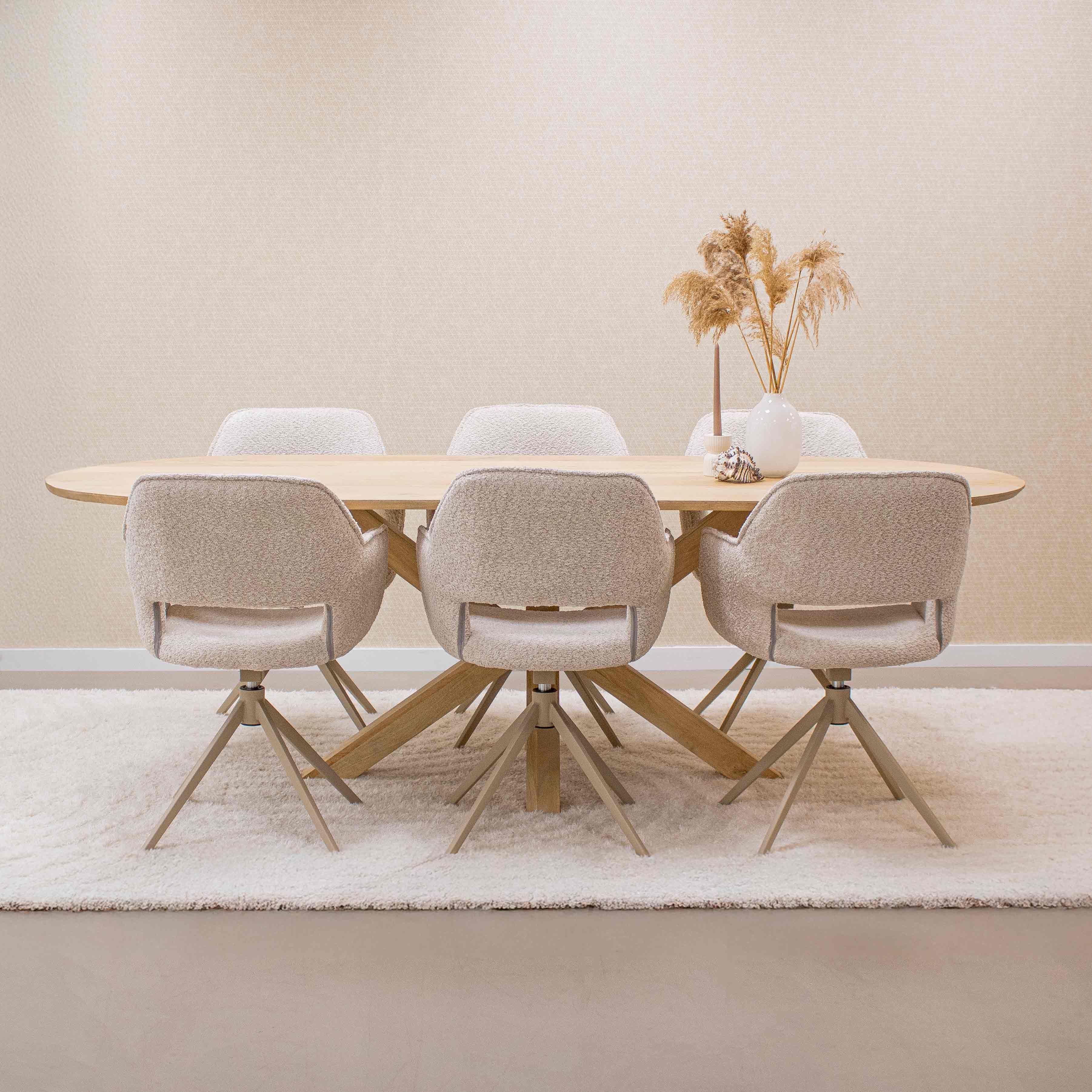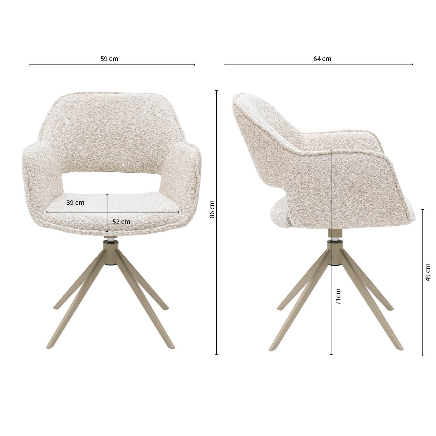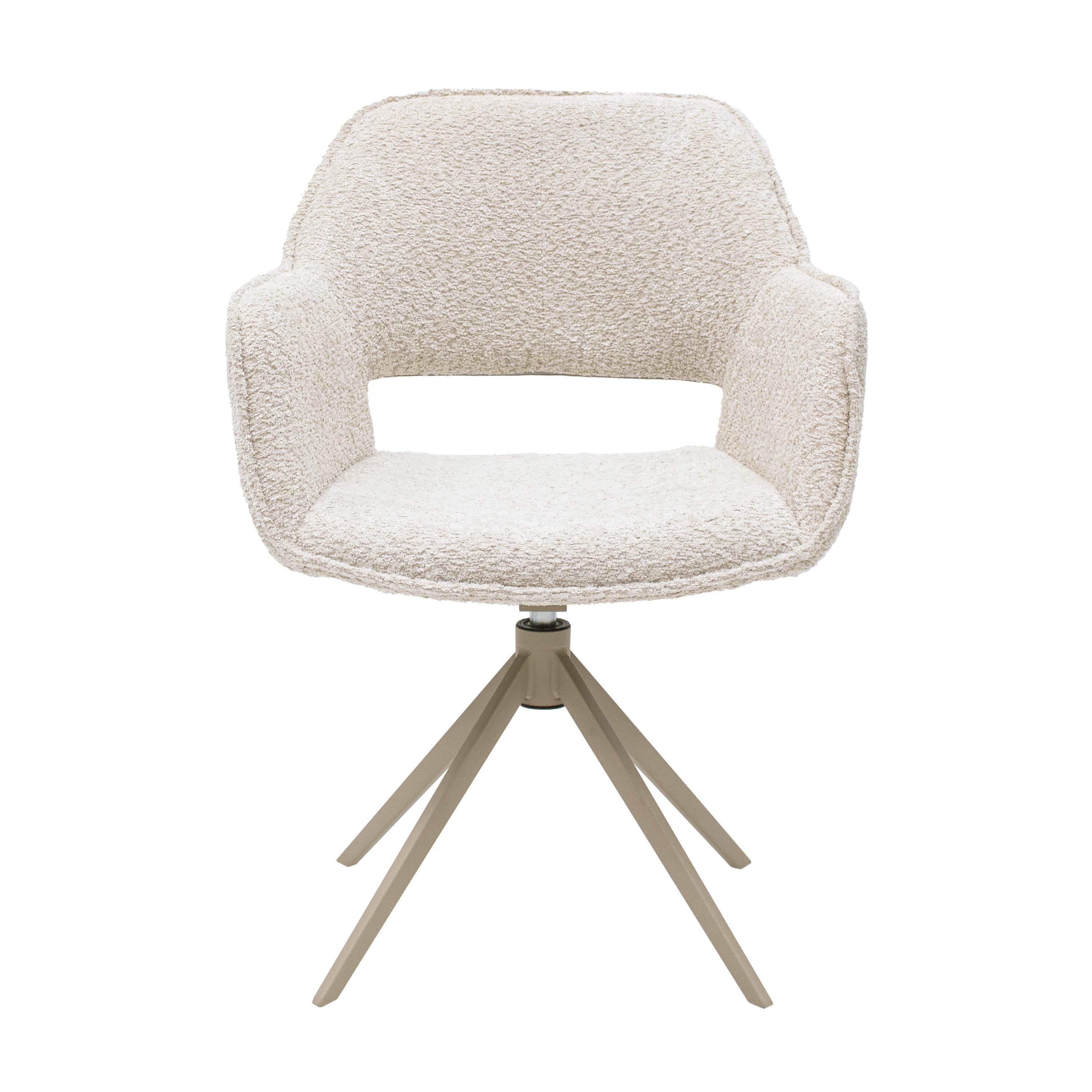 MEET OWEN! Der Drehsessel Owen ist mit einem schönen, weichen Bouclé-Stoff gepolstert, hat eine feine Armlehne und eine Öffnung in der Rückenlehne. Sein Metallgestell und der um 360 Grad drehbare Rahmen, der automatisch in seine ursprüngliche Position zurückkehrt, verbinden Stil mit Benutzerfreundlichkeit. Owen ist in verschiedenen Farben erhältlich!