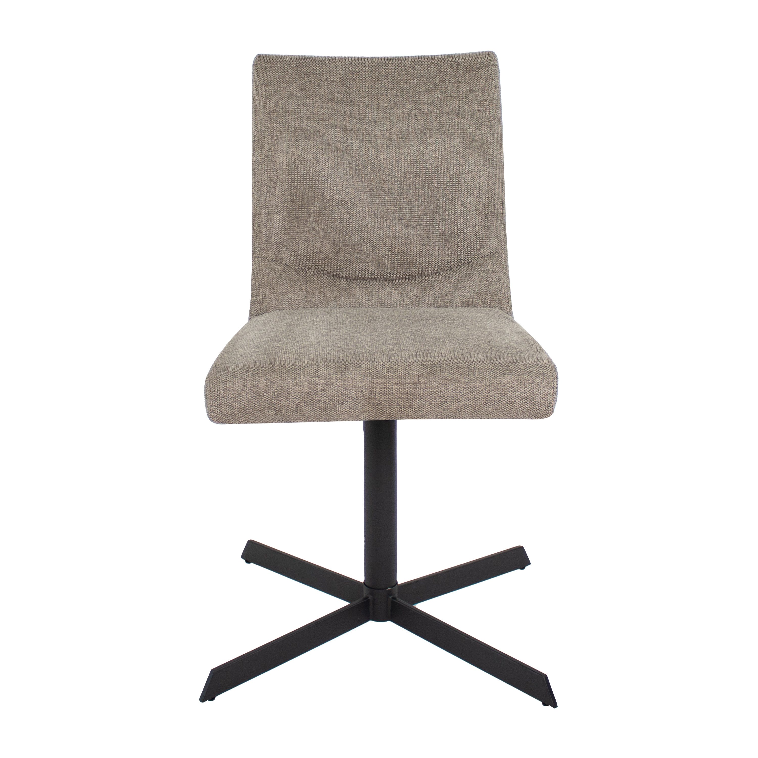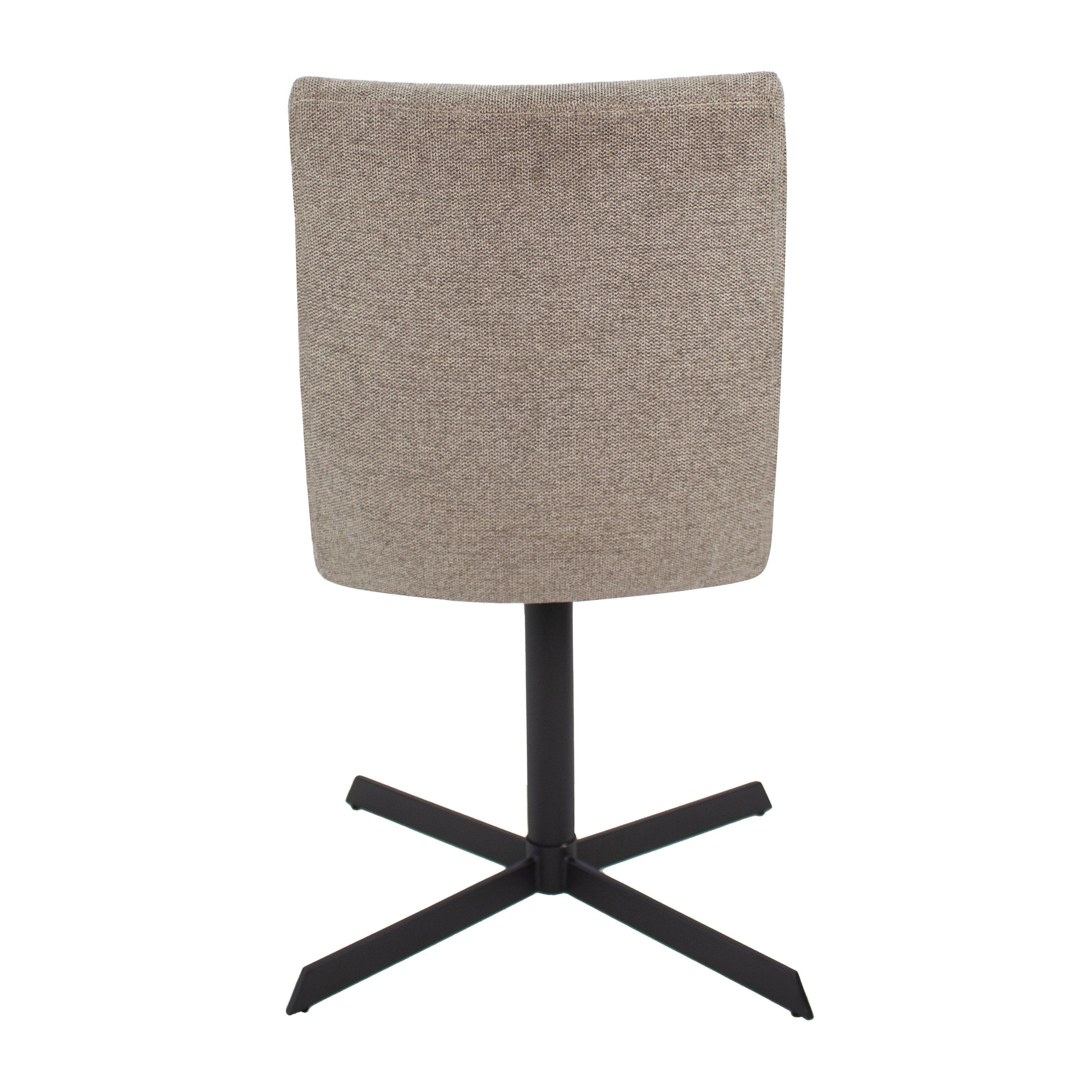 Sam ist mit einem melierten, strukturierten Stoff bezogen und in verschiedenen Farben erhältlich. Das markante Metallgestell des Stuhls ist ein Meisterwerk an modernem Design und Funktionalität. Das Gestell ist mit einem 360-Grad-Drehmechanismus ausgestattet, der es Ihnen ermöglicht, sich problemlos zum Esstisch zu bewegen oder ein Gespräch zu führen, ohne den Stuhl zu bewegen.