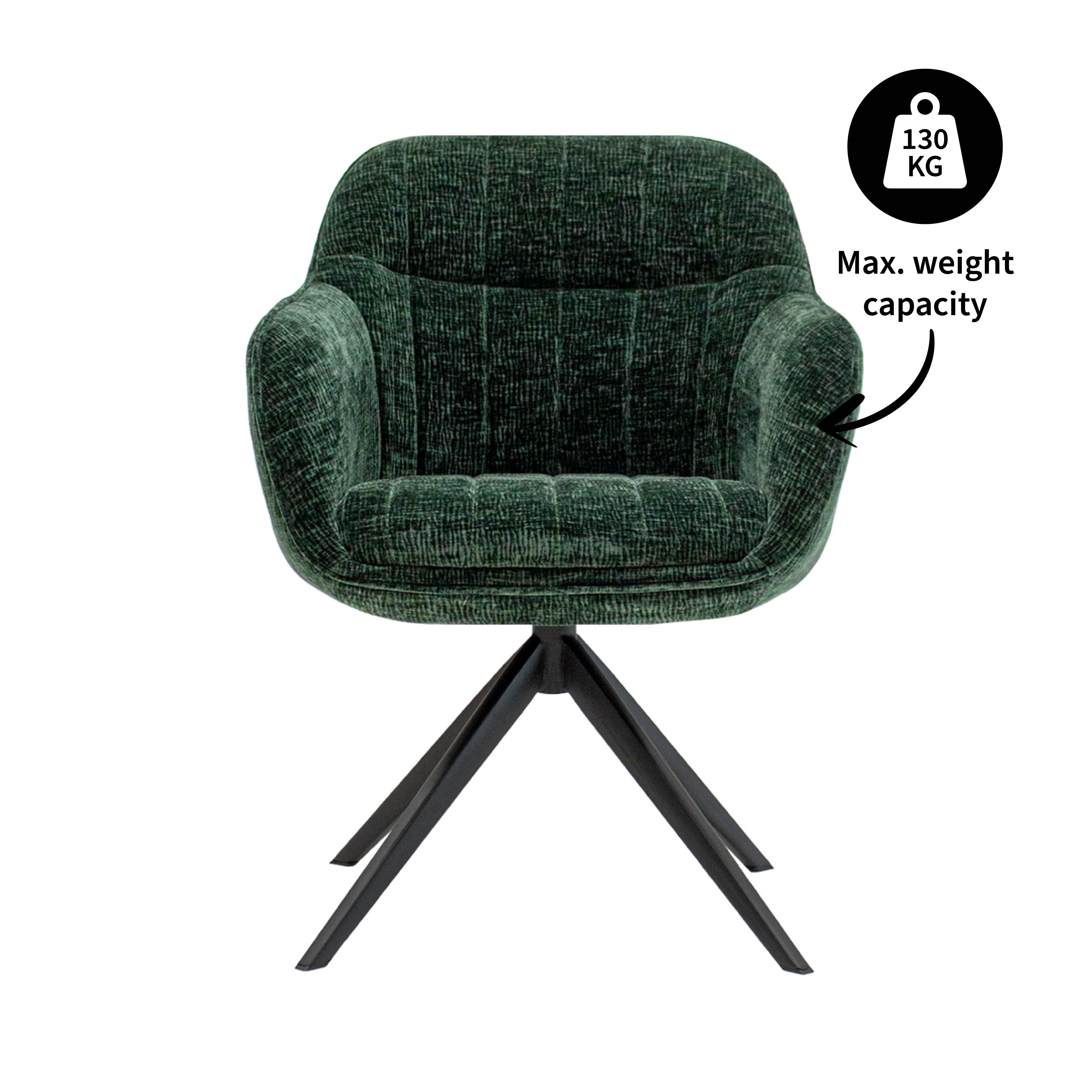 STAN ist mit einem luxuriösen Samtstoff bezogen, der von Wildtiermotiven inspiriert ist und einen schicken Touch hat. Der weiche Sitz mit Armlehnen bietet ultimativen Komfort und steht auf einem stabilen 360-Grad-Drehfuß. Ob Sie nun essen, arbeiten oder entspannen - STAN lässt sich buchstäblich in alle Richtungen drehen. Wählen Sie aus vier stilvollen Farben und stellen Sie sich Ihr perfektes Set zusammen.