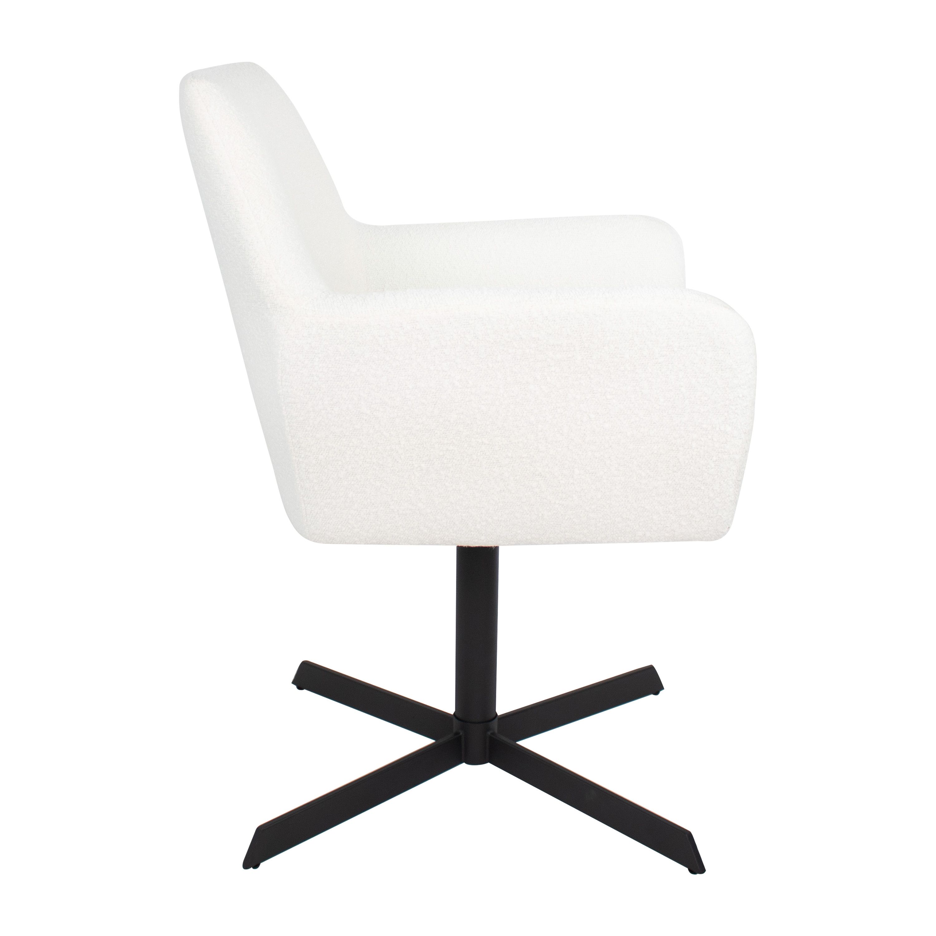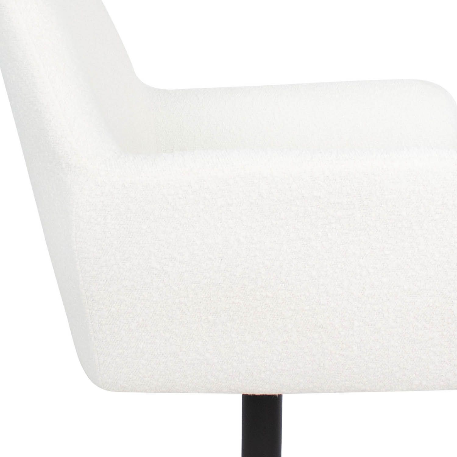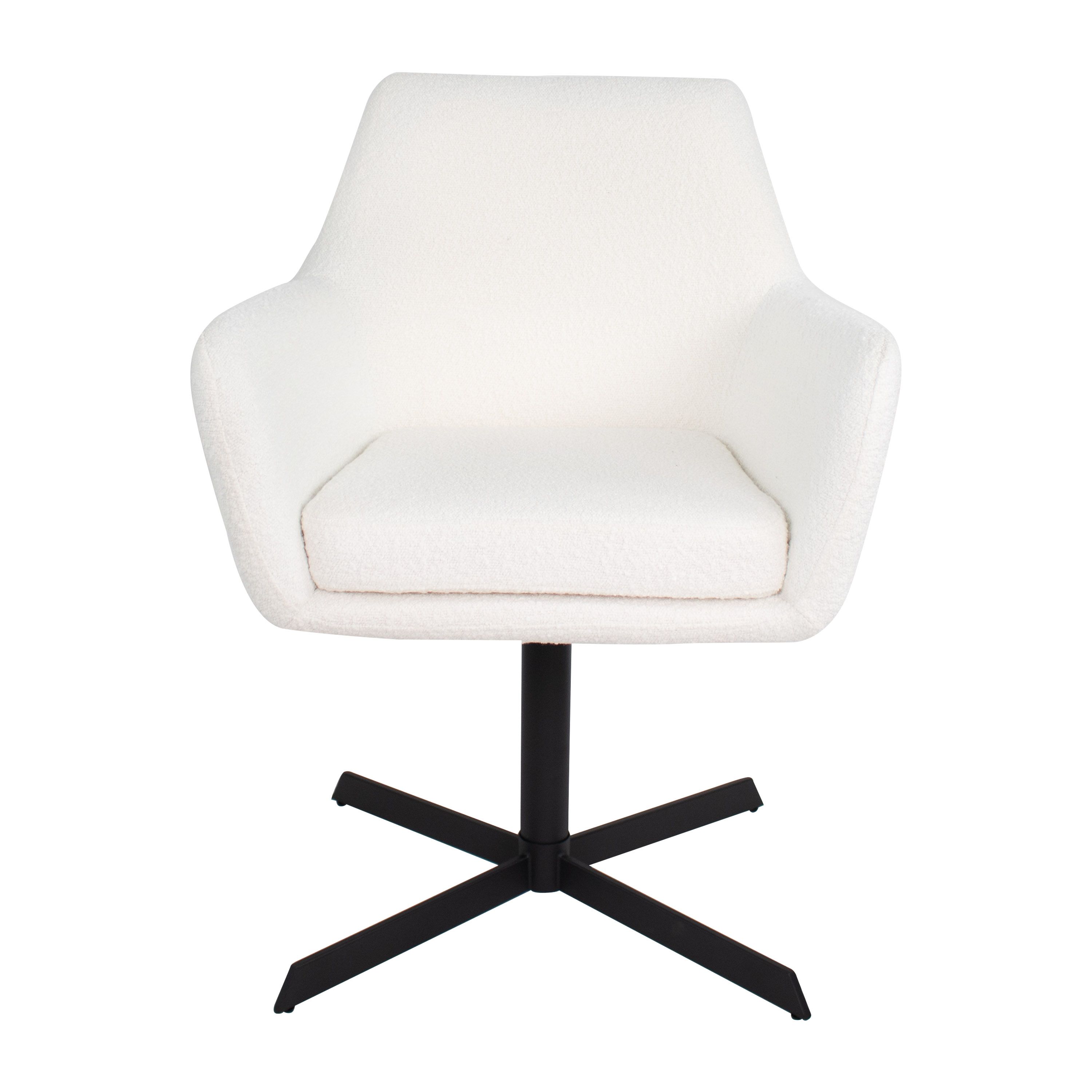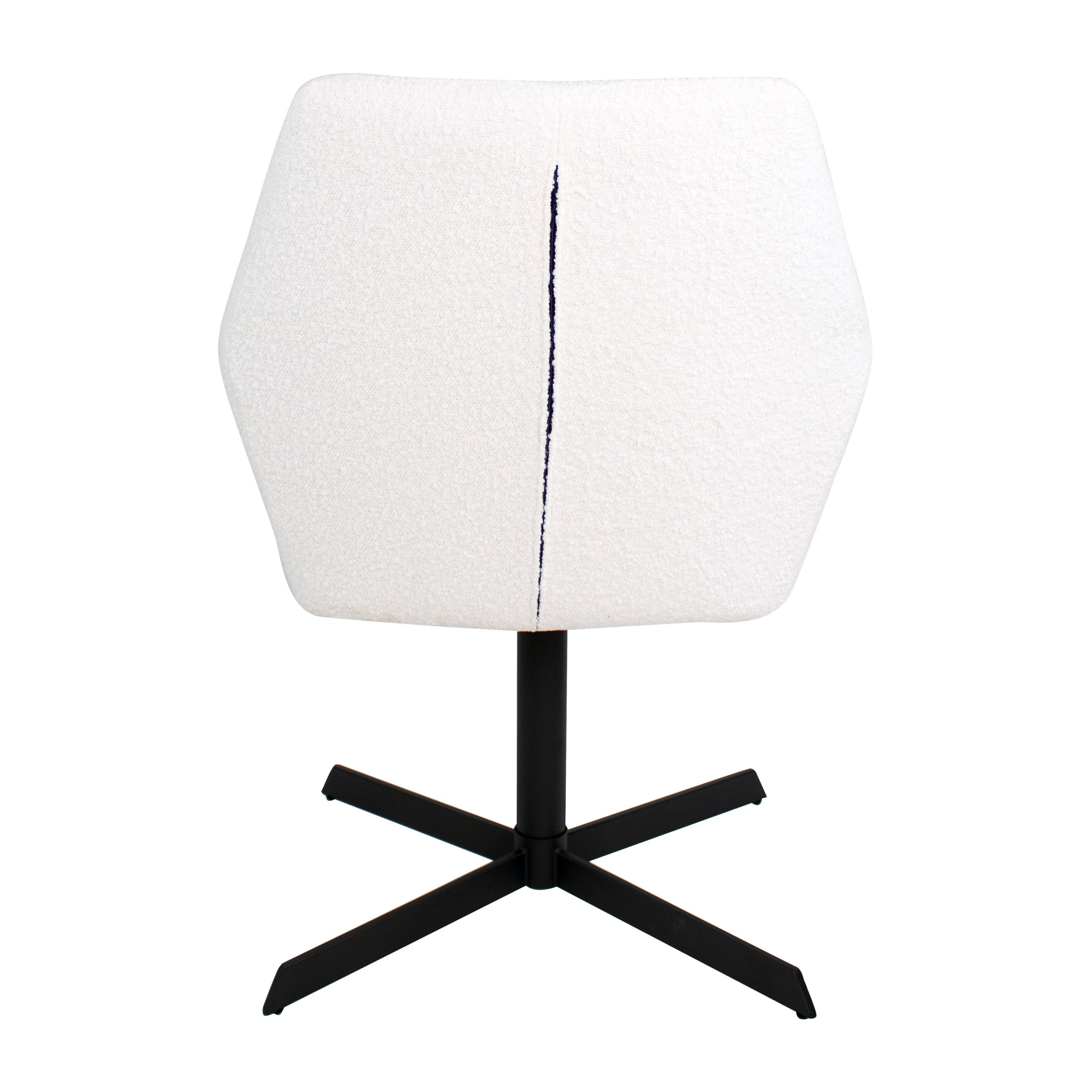 Viktor ist mit einem weichen Bouclé-Stoff umhüllt. Der Stuhl verfügt über gut positionierte Armlehnen, die den Sitzkomfort maximieren. Das markante Metallgestell des Stuhls ist ein Meisterwerk an modernem Design und Funktionalität. Das Gestell ist mit einem 360-Grad-Drehmechanismus ausgestattet, der es Ihnen ermöglicht, sich problemlos zum Esstisch zu bewegen oder ein Gespräch zu führen, ohne den Stuhl zu bewegen.