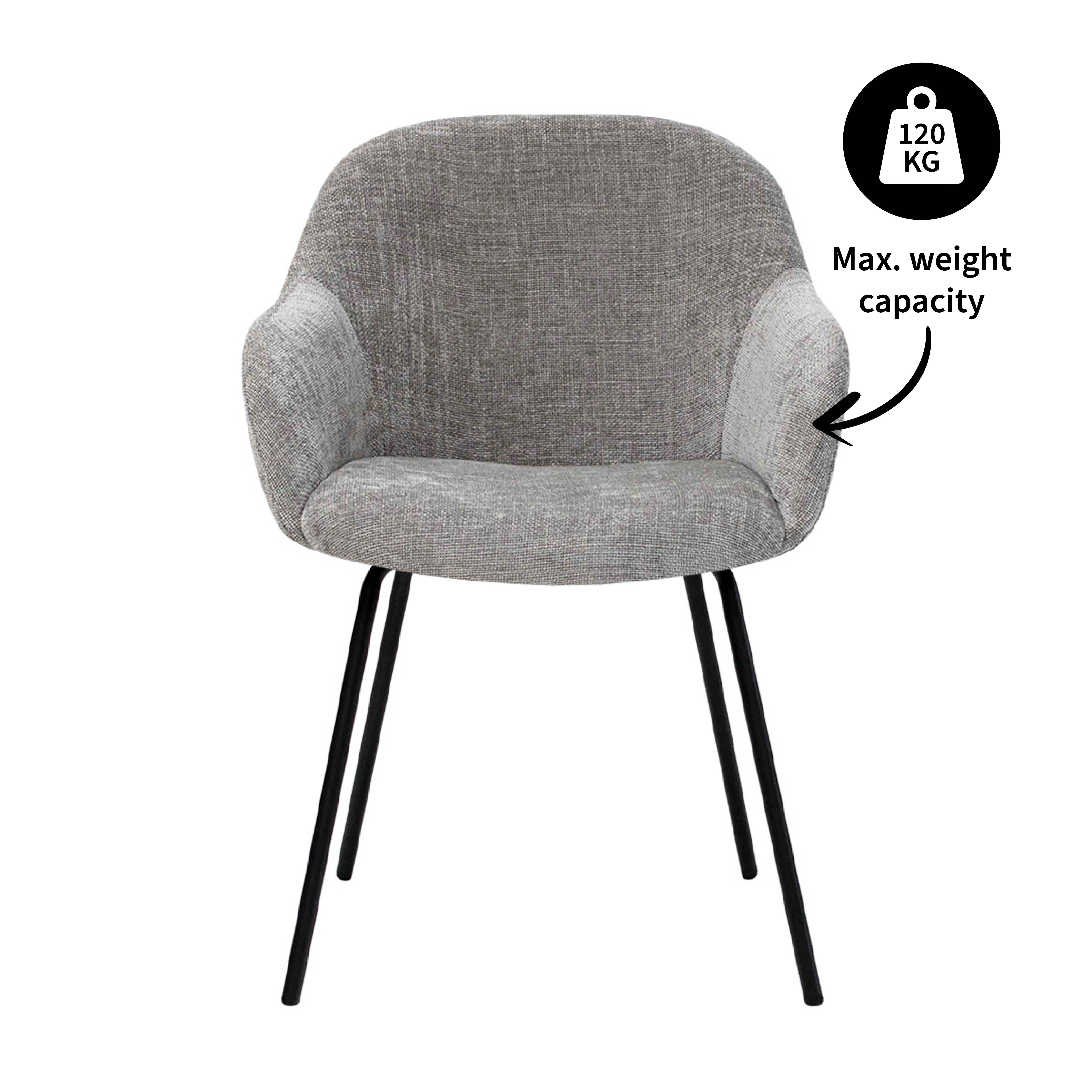 Mit seinem weichen, strukturierten Stoff, den einladenden Kurven und dem zeitlosen Look passt ARDA in fast jede Einrichtung, von modern bis klassisch. Der bequeme Sitz und die dezenten Armlehnen sorgen dafür, dass Sie stundenlang mühelos sitzen können, egal ob Sie essen, arbeiten oder etwas trinken.