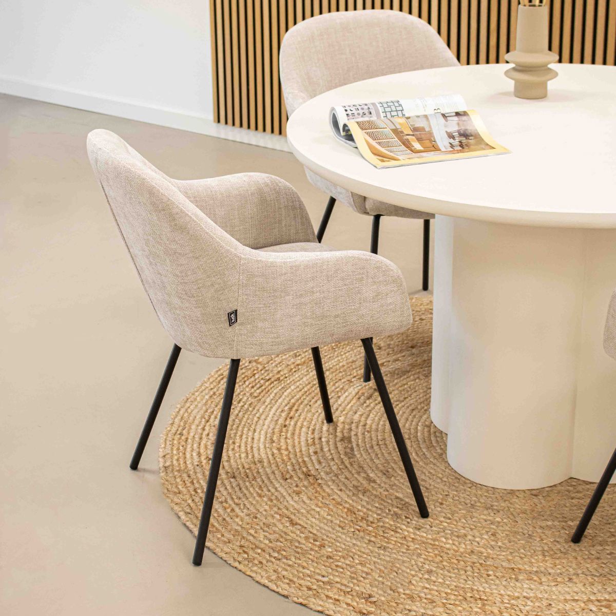 Mit seinem weichen, strukturierten Stoff, den einladenden Kurven und dem zeitlosen Look passt ARDA in fast jede Einrichtung, von modern bis klassisch. Der bequeme Sitz und die dezenten Armlehnen sorgen dafür, dass Sie stundenlang mühelos sitzen können, egal ob Sie essen, arbeiten oder etwas trinken.
