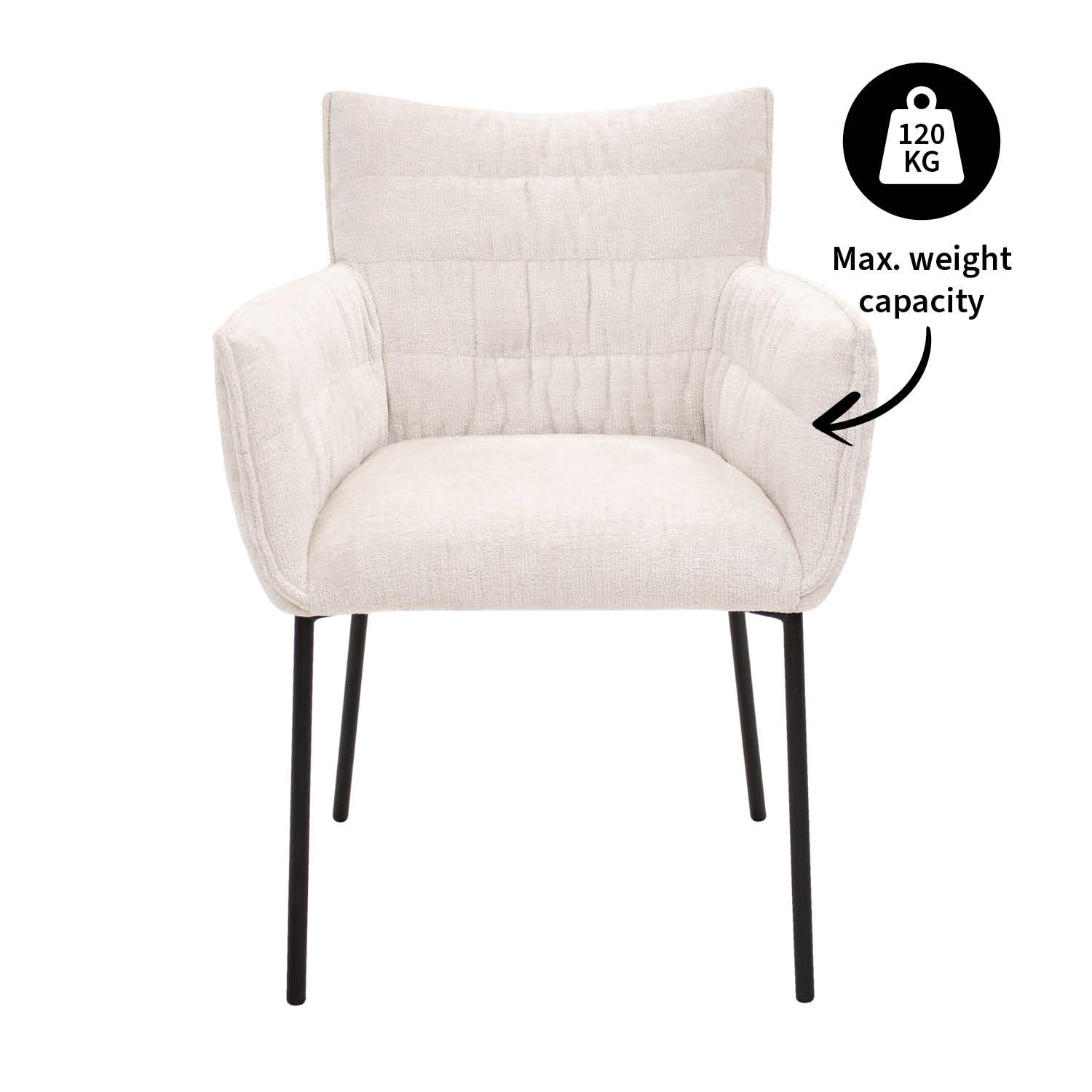 GOOS ist mit einem weichen Chenille-Stoff gepolstert, der Ihnen ein angenehmes Sitzerlebnis bietet. Chenille ist ein weicher und flauschiger Stoff, der für sein luxuriöses Aussehen und seine Textur bekannt ist. Das Gestell besteht aus Metall und ist in einem eleganten Schwarz gehalten. Dieser vielseitige Esszimmerstuhl ist in verschiedenen Farben erhältlich, so dass Sie die perfekte Ergänzung zu Ihrer Einrichtung finden können.