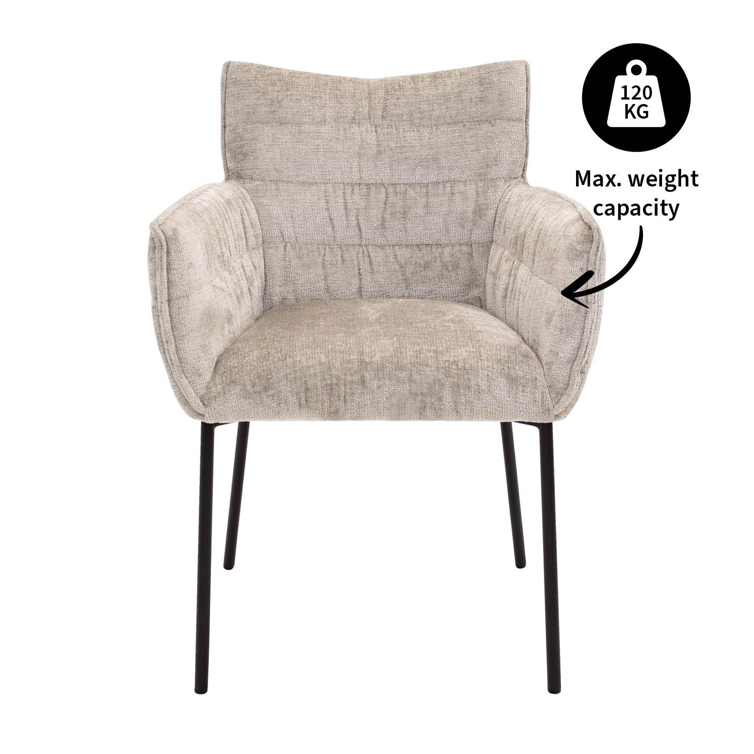 SAGEN SIE HALLO ZU GOOS! GOOS ist mit einem weichen Chenille-Stoff gepolstert, der Ihnen ein angenehmes Sitzerlebnis bietet. Chenille ist ein weicher und flauschiger Stoff, der für sein luxuriöses Aussehen und seine Textur bekannt ist. Das Gestell besteht aus Metall und ist in einem eleganten Schwarz gehalten. Dieser vielseitige Esszimmerstuhl ist in verschiedenen Farben erhältlich, so dass Sie die perfekte Ergänzung zu Ihrer Einrichtung finden können.
