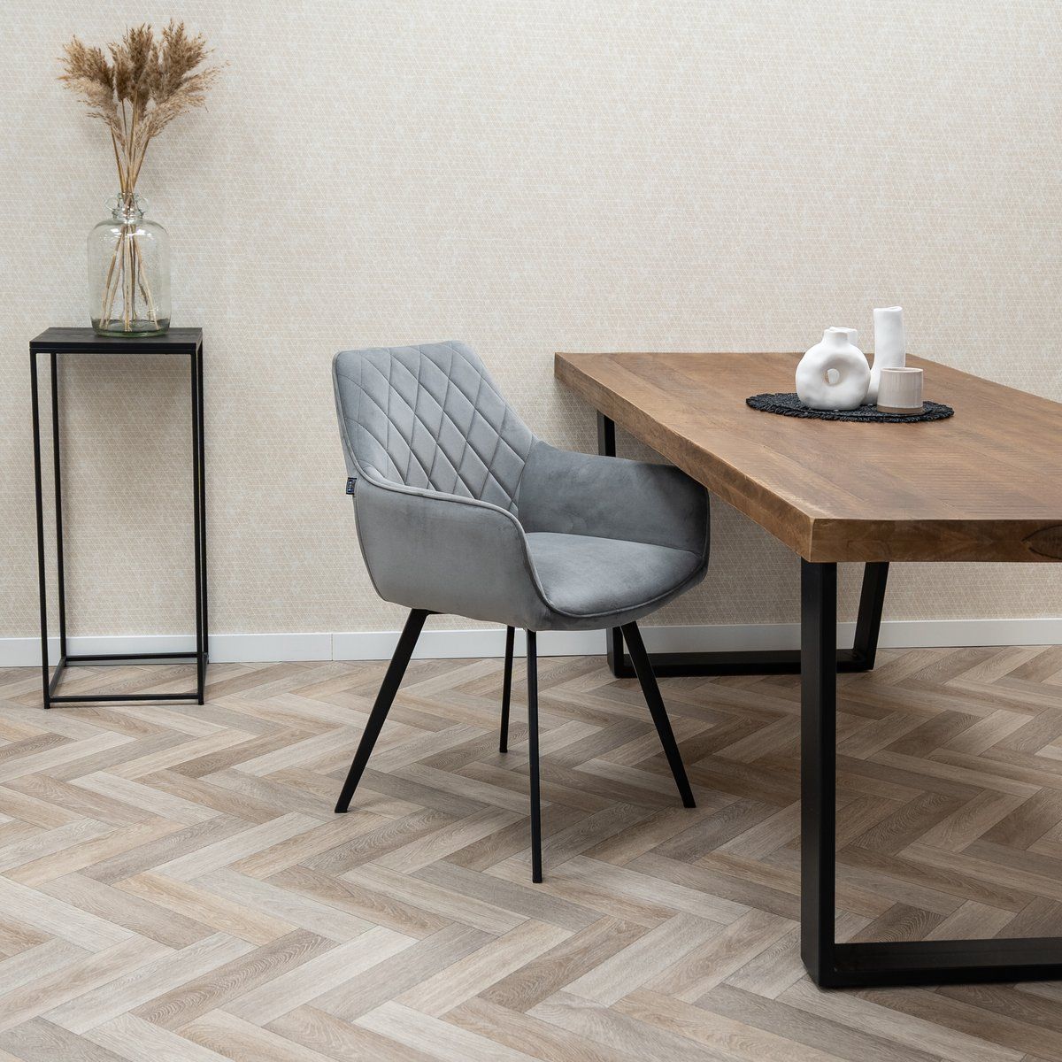 Dieser coole Esszimmerstuhl ist unser alter, vertrauenswürdiger Karl in einer Velvet jacke. Die Kombination aus elastischem Sitz und schwarzem Metallrahmen verleiht diesem Stuhl den Sitzkomfort und das Erscheinungsbild, das Sie suchen. Total Kick! Erhältlich in mehreren Farben, also mix and match Sie das ultimative Ergebnis!