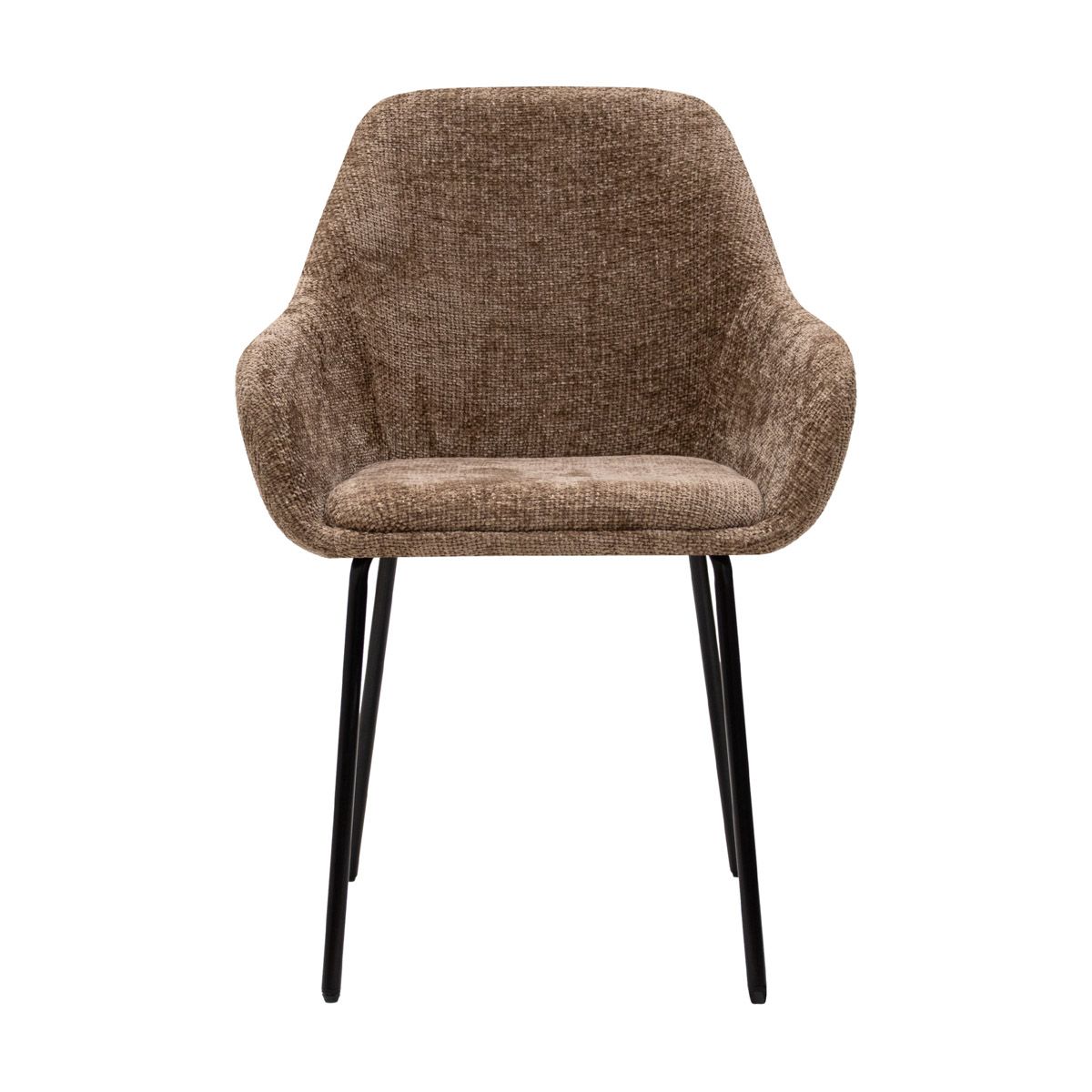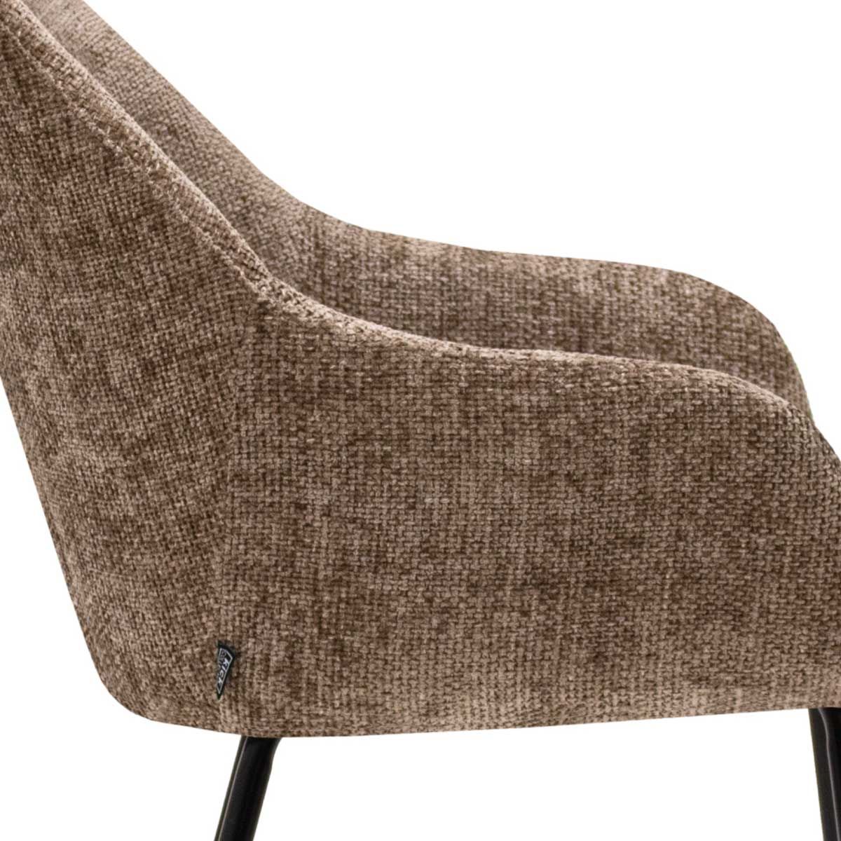 Der Stuhl ist mit einem Chenille-Stoff überzogen und hat eine warme Ausstrahlung. Die bequeme Sitzfläche und die gut positionierten Armlehnen sorgen für ein optimales Sitzerlebnis. Das Gestell aus schwarzem Industriemetall sorgt nicht nur für ein modernes und geräumiges Aussehen, sondern verleiht dem Stuhl auch einen festen Stand auf dem Boden.