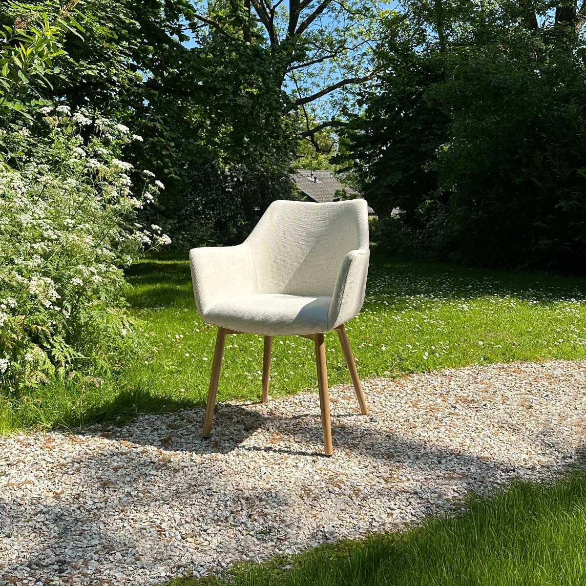 De zitting is bekleed met een outdoor textuurstof die waterbestendig is en extra snel droogt. De stoel heeft goed gepositioneerde armleuningen en een hoogwaardig zitcomfort waardoor je heerlijk op deze stoel kunt relaxen tijdens bijvoorbeeld een zomeravond.