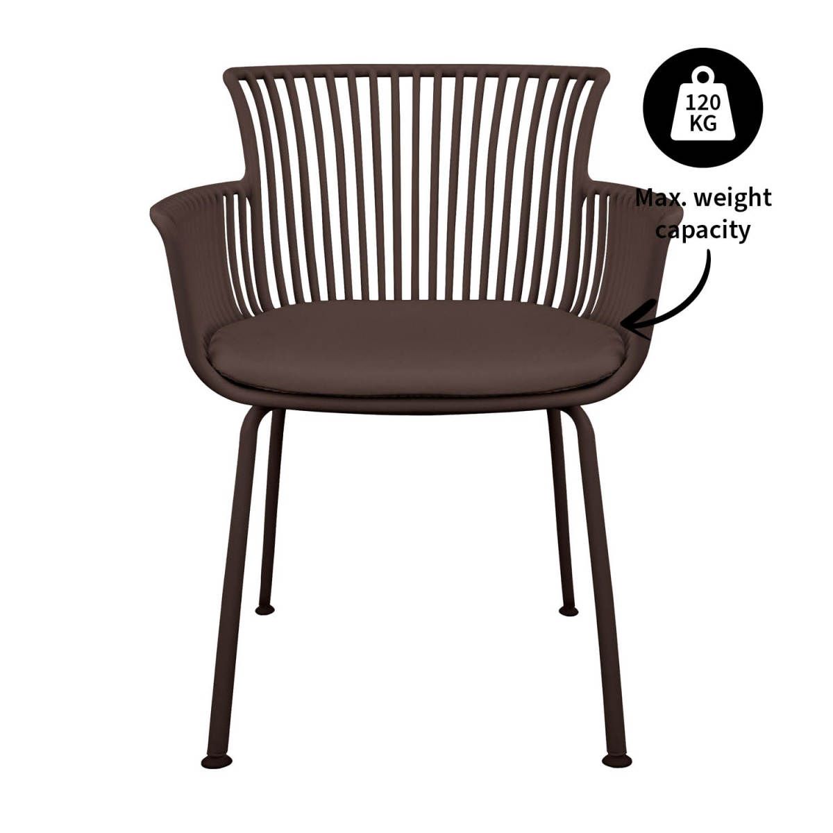 Der schalenförmige Sitzbereich aus robustem Kunststoff verleiht OTIS ein modernes Aussehen, während das Metallgestell mit Schutzbeschichtung für Stabilität und Wetterbeständigkeit sorgt. Ein stilvolles Detail, das sowohl praktisch als auch nachhaltig ist.