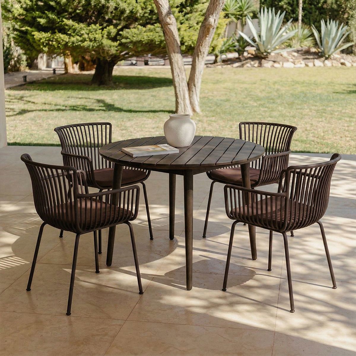 OTIS ist der ideale Gartenstuhl für alle, die auch im Freien Wert auf Komfort und Design legen. Mit seiner ergonomischen Rückenlehne, den praktischen Armlehnen und einem bequemen Sitzkissen aus PU-Leder sitzen Sie während langer Sommerabende oder entspannter Kaffeepausen im Garten wunderbar bequem.