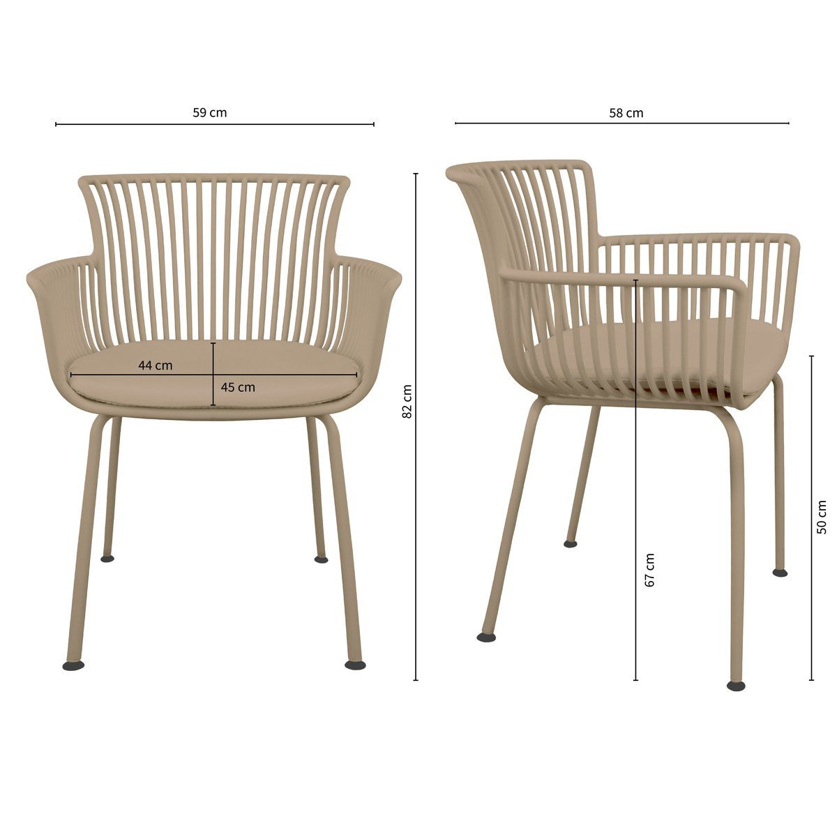 Der schalenförmige Sitzbereich aus robustem Kunststoff verleiht OTIS ein modernes Aussehen, während das Metallgestell mit Schutzbeschichtung für Stabilität und Wetterbeständigkeit sorgt. Ein stilvolles Detail, das sowohl praktisch als auch nachhaltig ist.